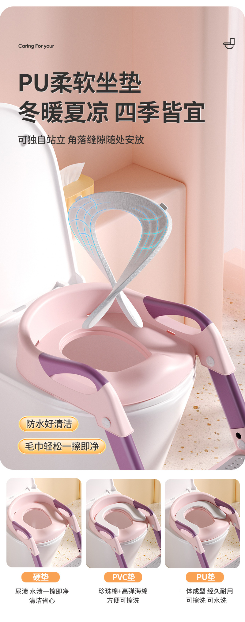 Детская туалетная лестница, противоскользящая, легкая в очистке, вспомогательное устройство