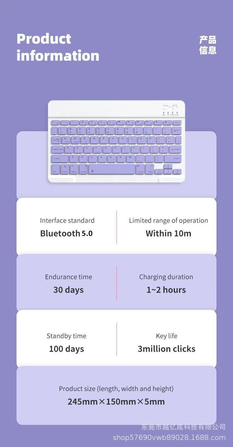 ![]() | 7inch bluetooth keyboard + single-mode mouse (battery version) | Purple | ¥18.5 / ≈ 219 ₽ | 32245 | 6085542922416 | |
