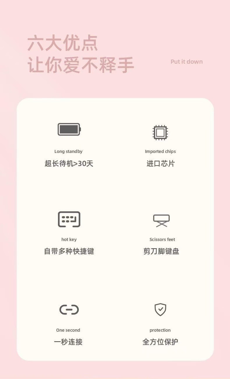 ![]() | 10inch bluetooth keyboard + dual-mode mouse (rechargeable model) | Pink | ¥20.5 / ≈ 243 ₽ | 31830 | 6085542922391 | |