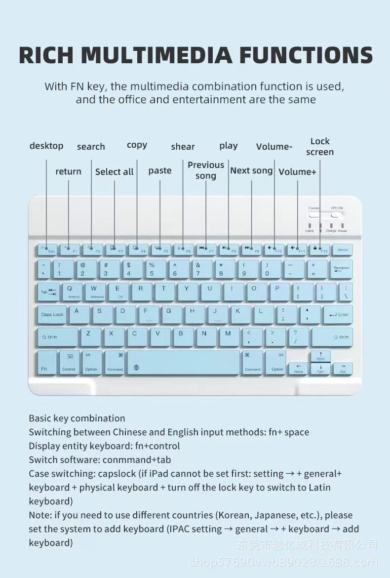 ![]() | 10inch bluetooth keyboard (rechargeable model) | Sky blue | ¥14.5 / ≈ 172 ₽ | 32176 | 6085542922371 | |