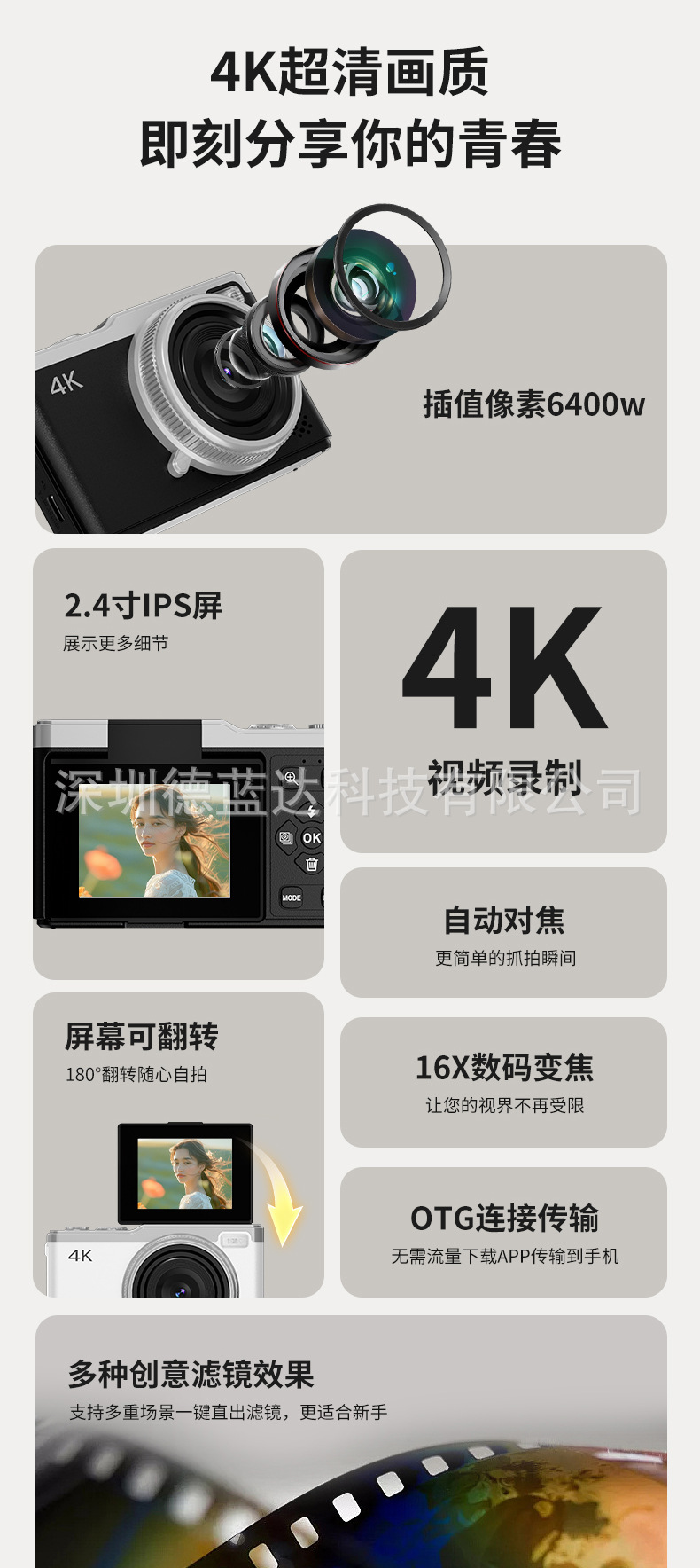 Кросс-бордерная новая 4K цифровая высококачественная камера начального уровня беззеркальная камера для студентов, вечеринок, селфи, с откидным экраном, оптовая продажа