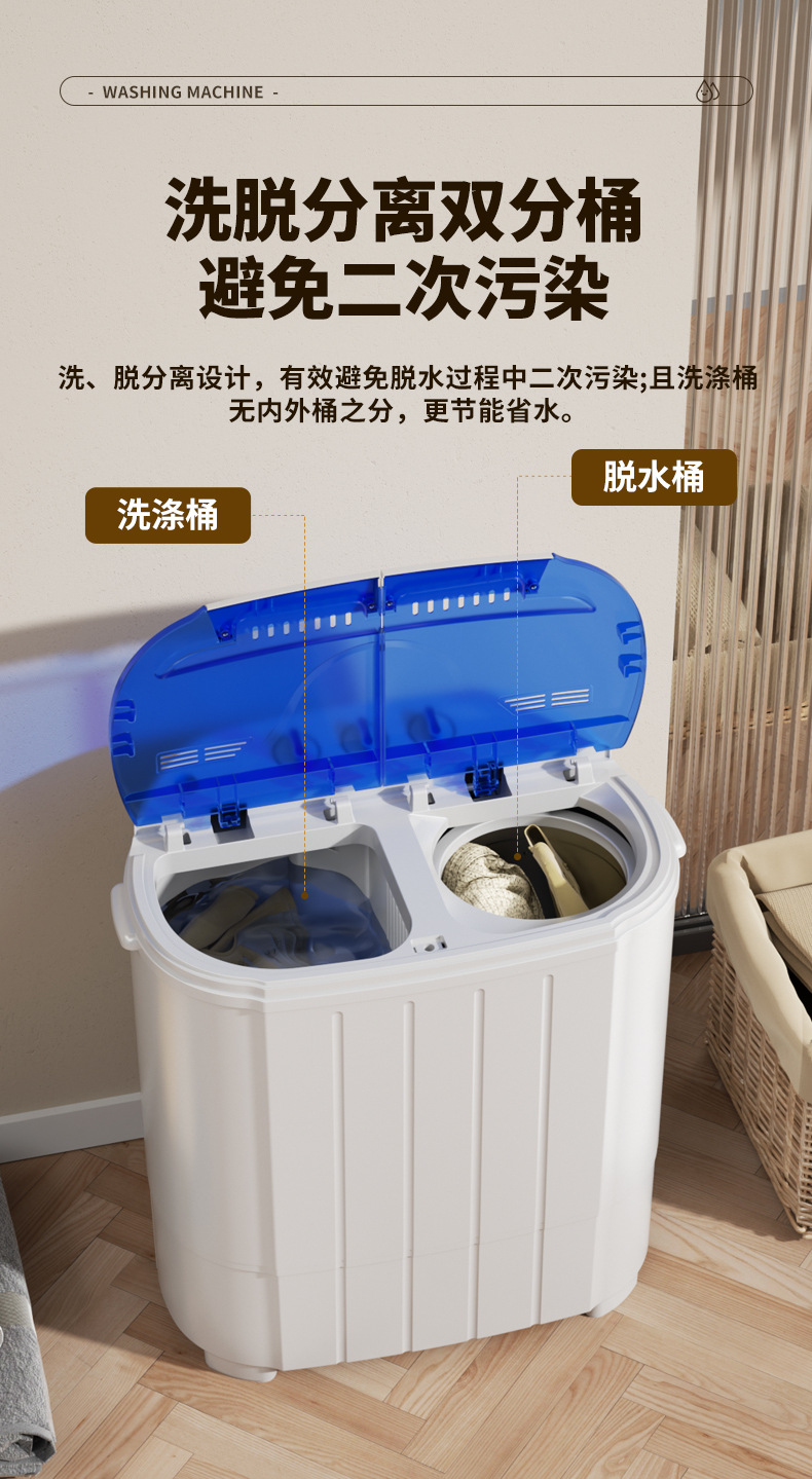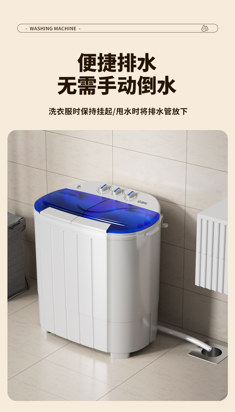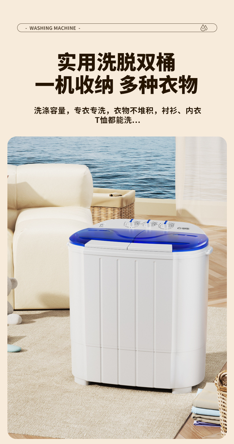 2025 Новый двойной бак старинная бытовая мини-семия автоматическая стиральная машина для аренды в общежитии