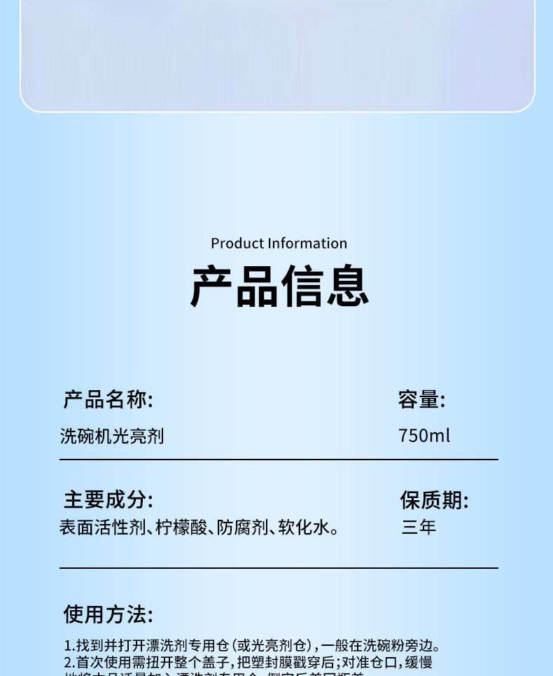 📦 | Deluxe-dishwasher brightener-750ml | 1шт: ¥5.00, 30шт: ¥4.50, 3000шт: ¥4.00 | 999699 | 5932676332471 |