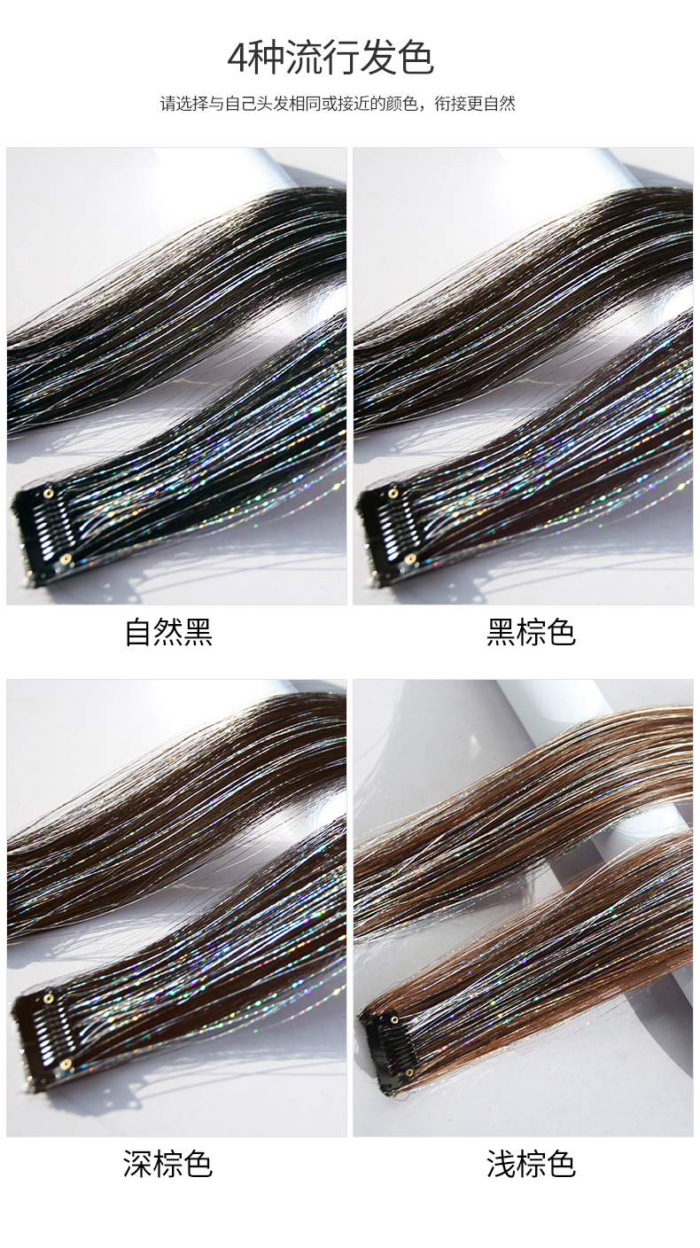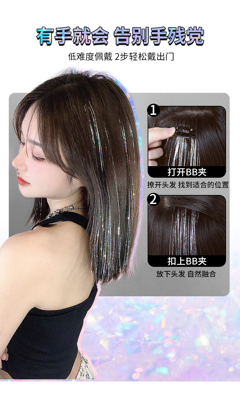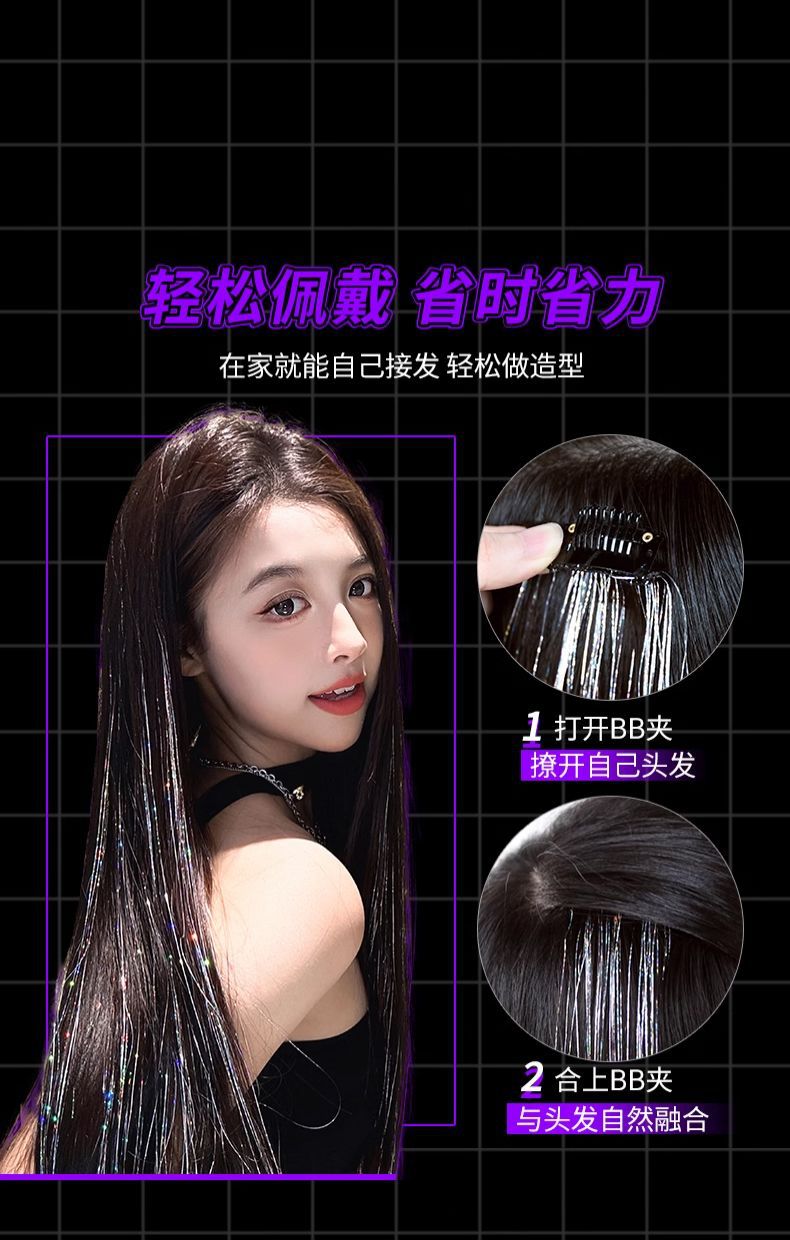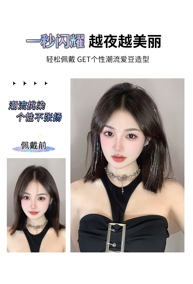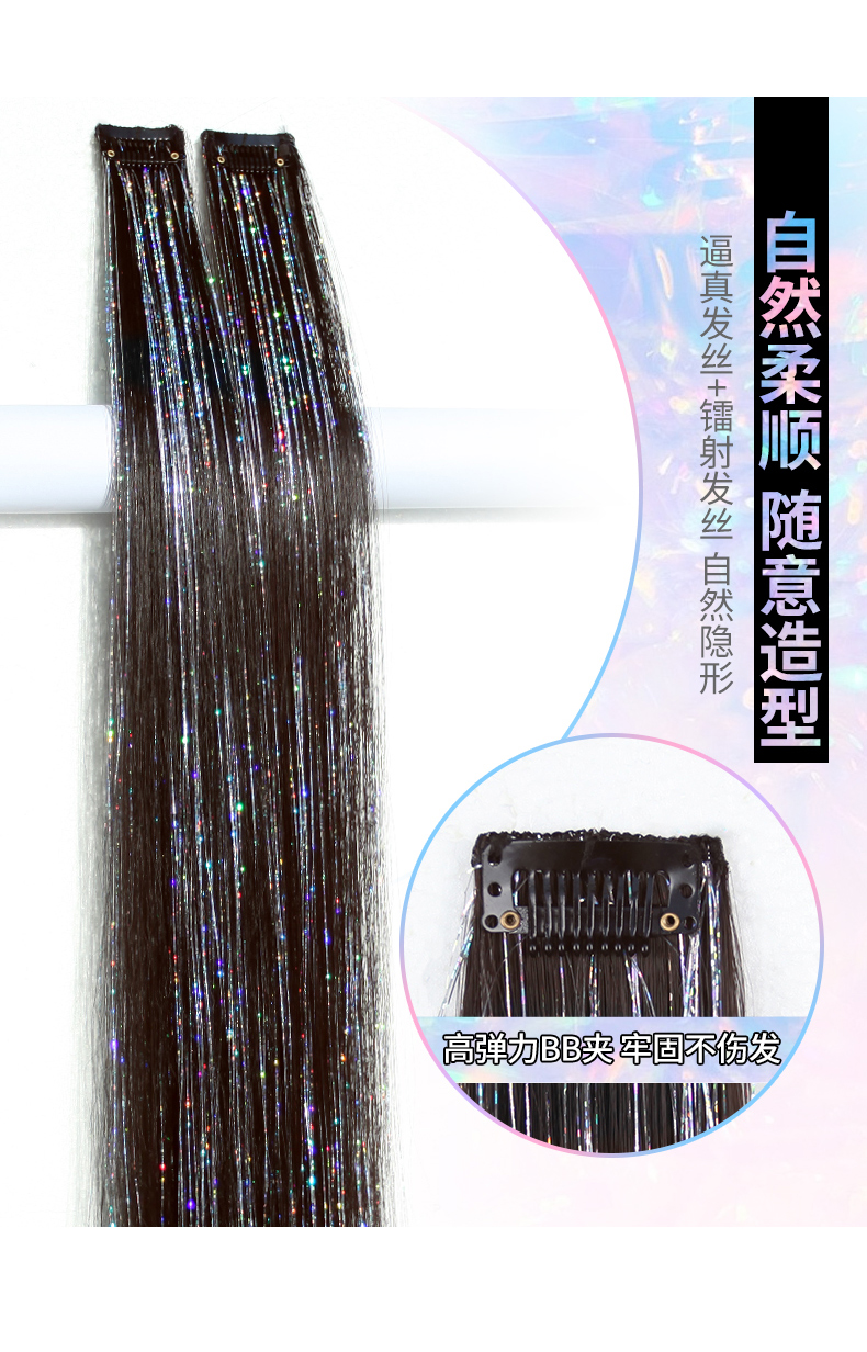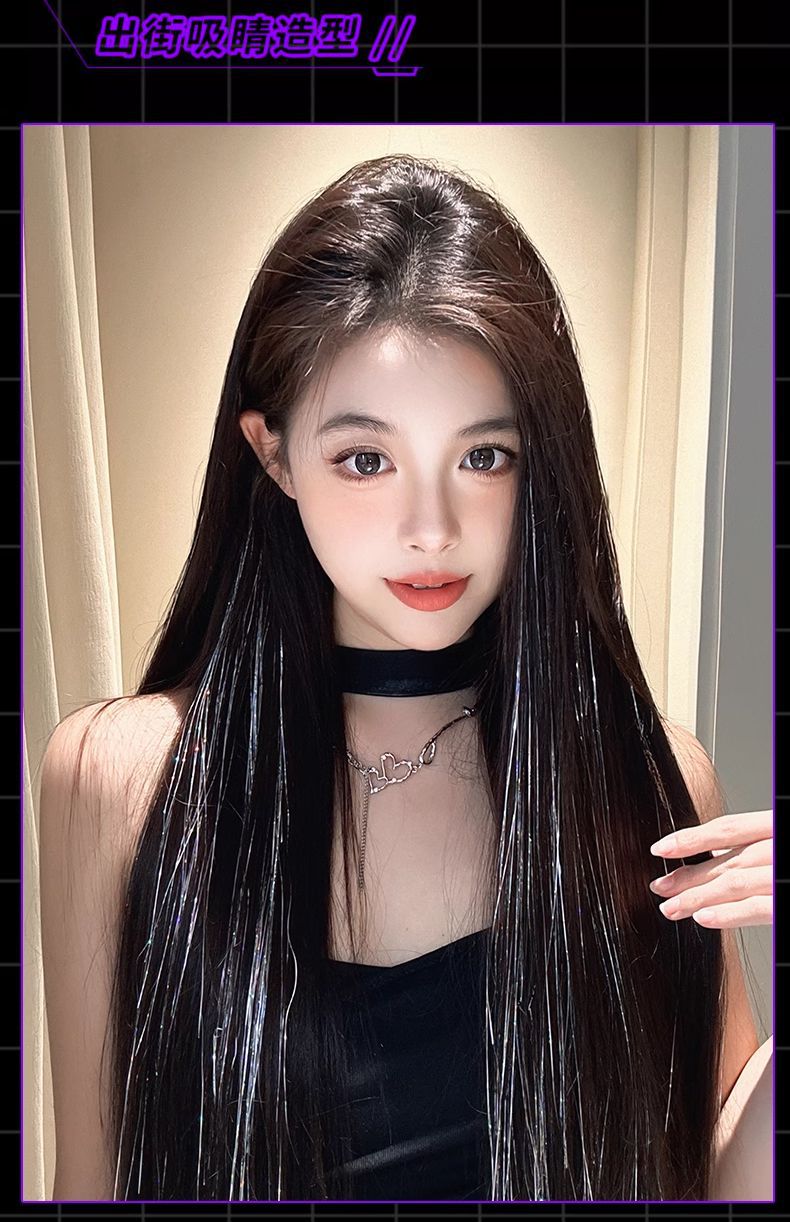 Лазерный парик с ушными зажимами для женщин, аксессуары для концертов, сверкающий шелковый цветной парик
