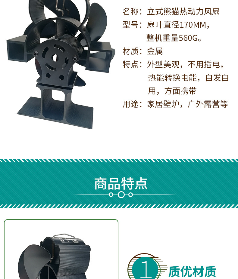 Вентилятор для камина Panda нового модели, термоэлектрический вентилятор с 6 лопастями, большой диаметр 170, без необходимости в электричестве, термоэлектрическая генерация