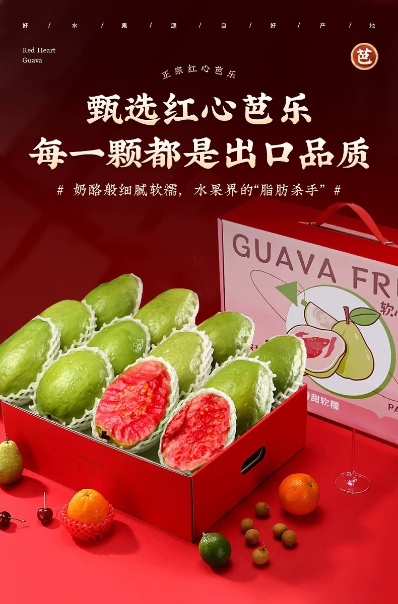 Гуандун мягкая и клейкая красная гуава 2.5кг сезонный свежий фрукт гуава мягкая и клейкая красная гуава в коробке бесплатная доставка