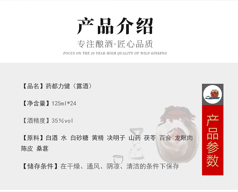 Сырьё и ингредиенты Strong-flavor liquor, deer blood, ginseng, wolfberry, water