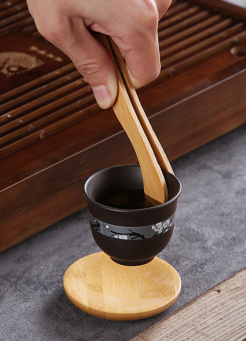 Держатель для чайных чашек из черного дерева с крылышками, бамбуковые чайные щипцы, прямые щипцы, изогнутые щипцы, чайные аксессуары, бамбуковые щипцы против ожогов