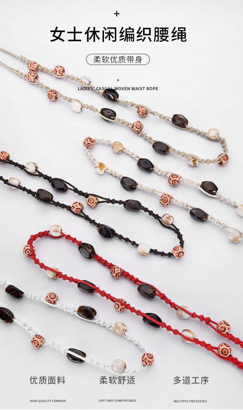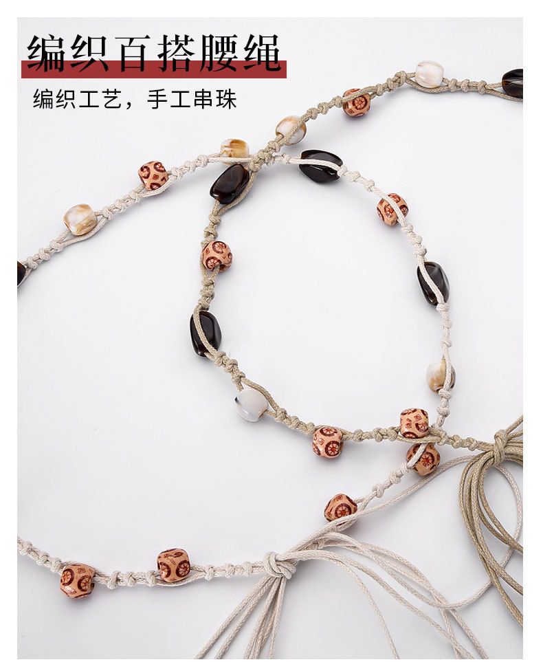 Литературная ретро этническая стильная нерегулярная бижутерия для талии, бохо стиль, плетеный утягивающий пояс