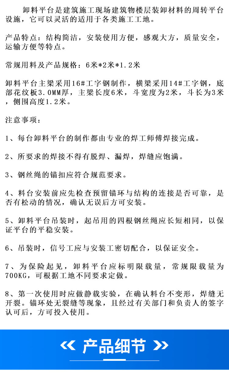 Подвесная разгрузочная платформа, мобильная рабочая платформа для высотных работ на строительных площадках