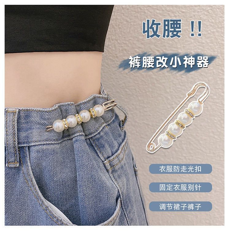 Брошь для подтяжки пояса штанов, фиксация одежды и юбок, инструмент для уменьшения талии, анти-экспозиция пряжка, жемчужная талиевая булавка