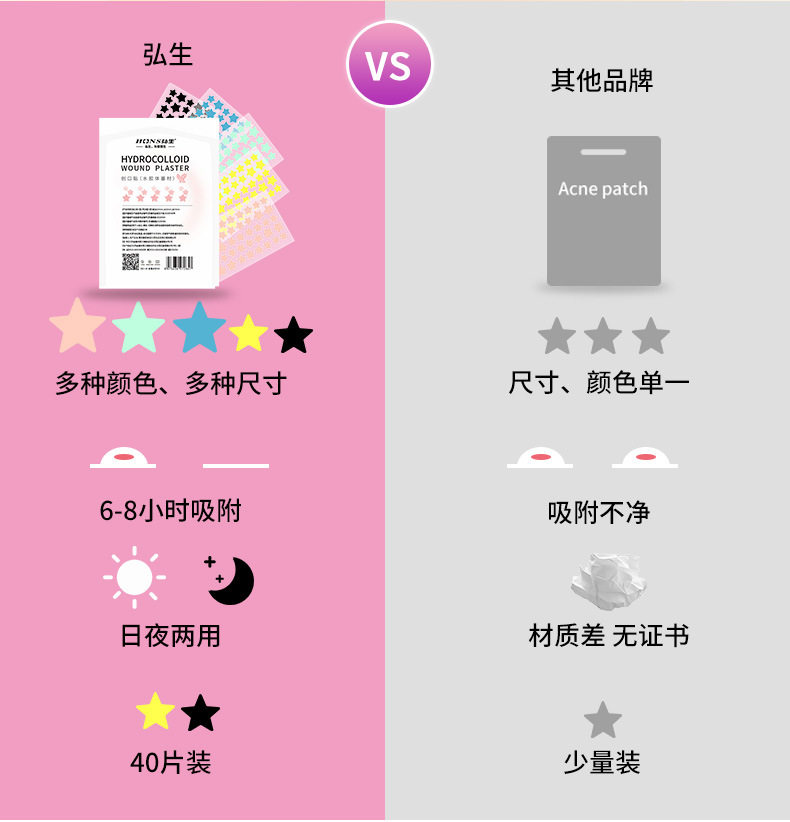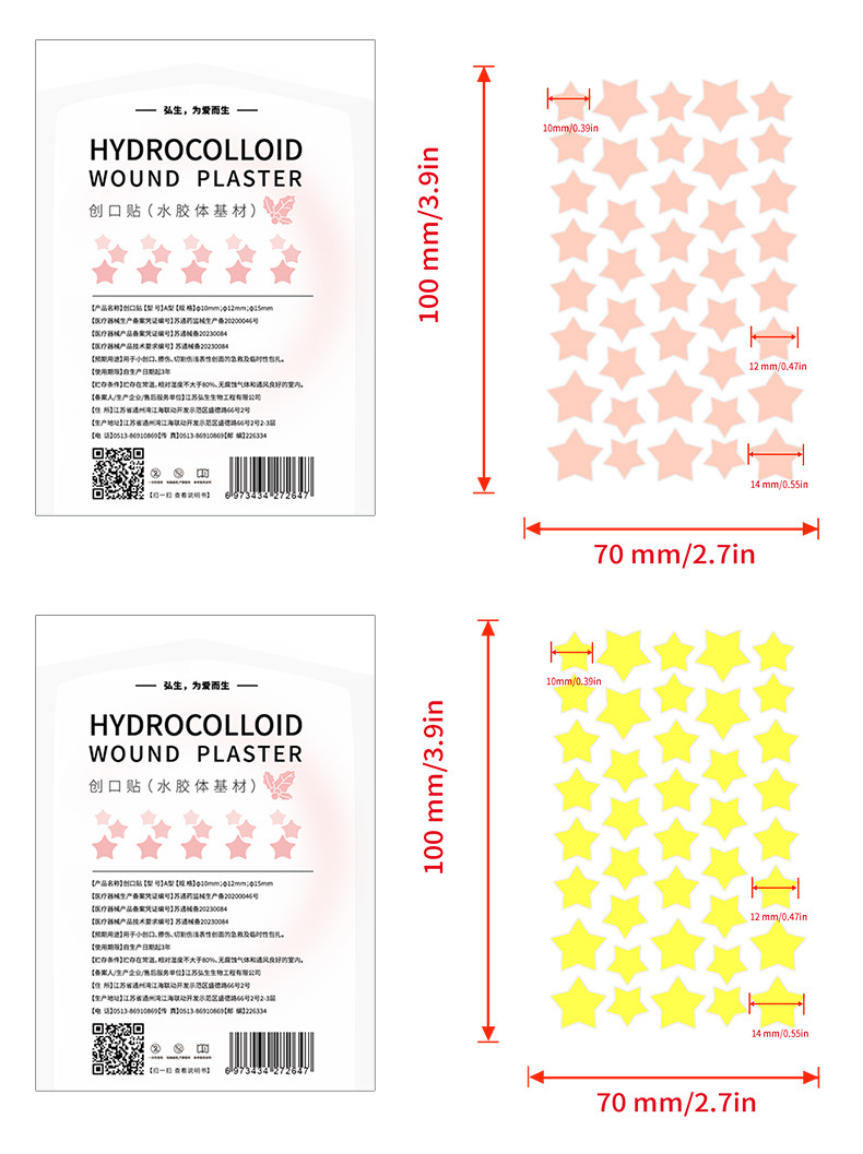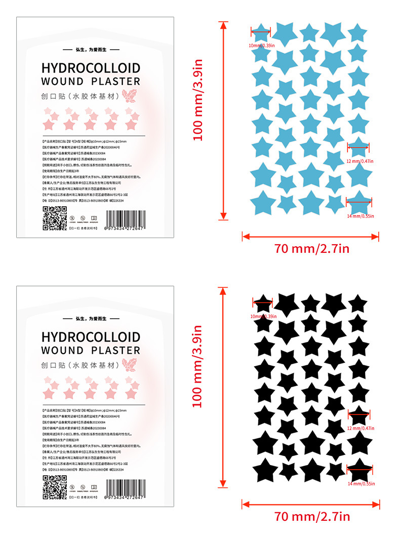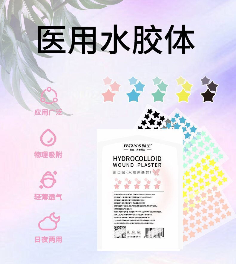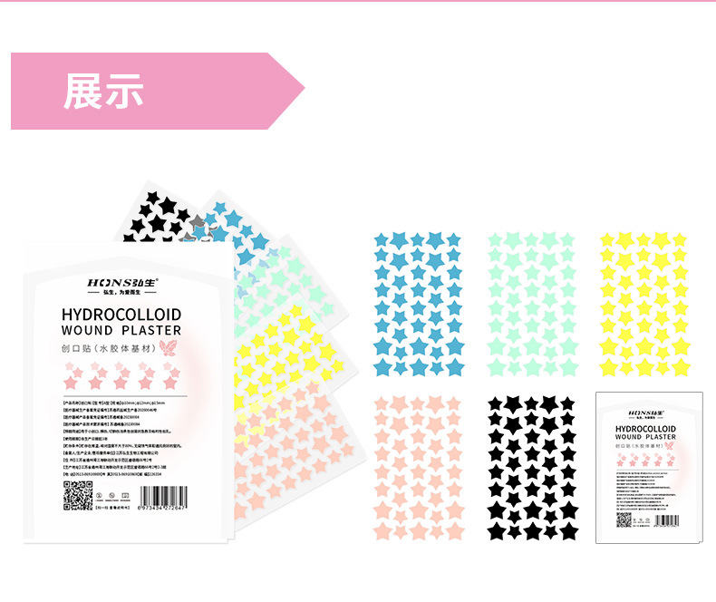 Цветные звездчатые патчи от акне в китайской упаковке для трансграничных продаж, доступны в различных цветах, сердцевидная искусственная кожа для защиты ран и покрытия акне