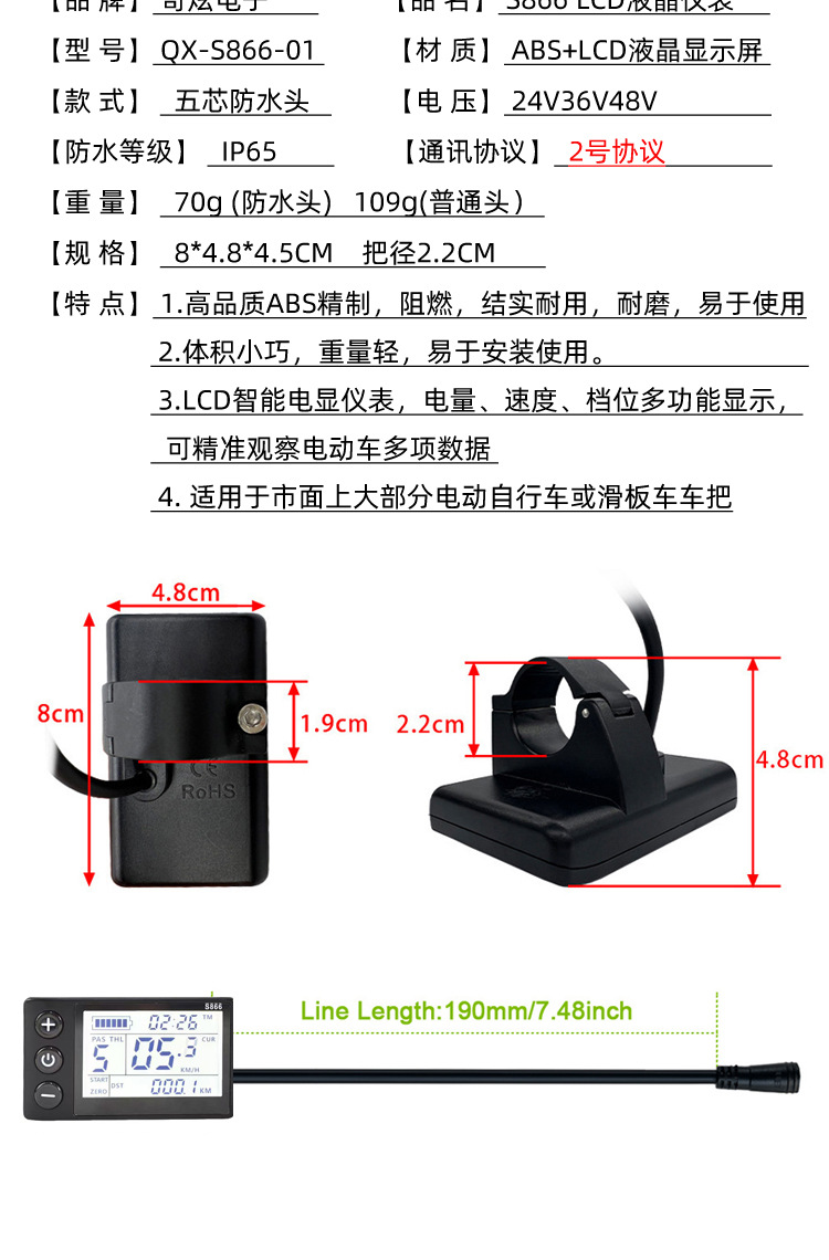 Аксессуары для модификации литиевого аккумулятора горного велосипеда Lcd-S866 Электросамокат Умпанель приборов с водонепроницаемым экраном