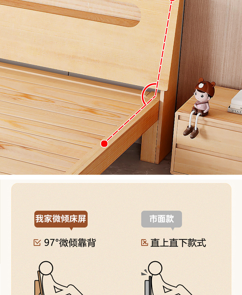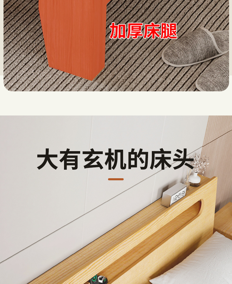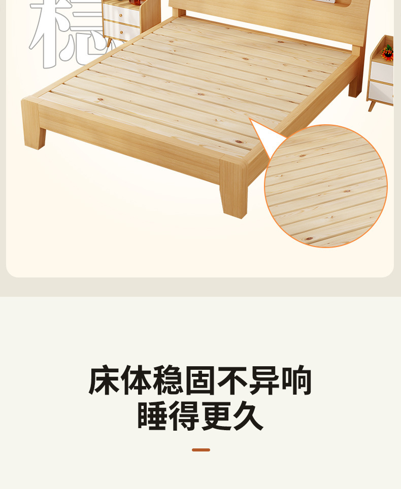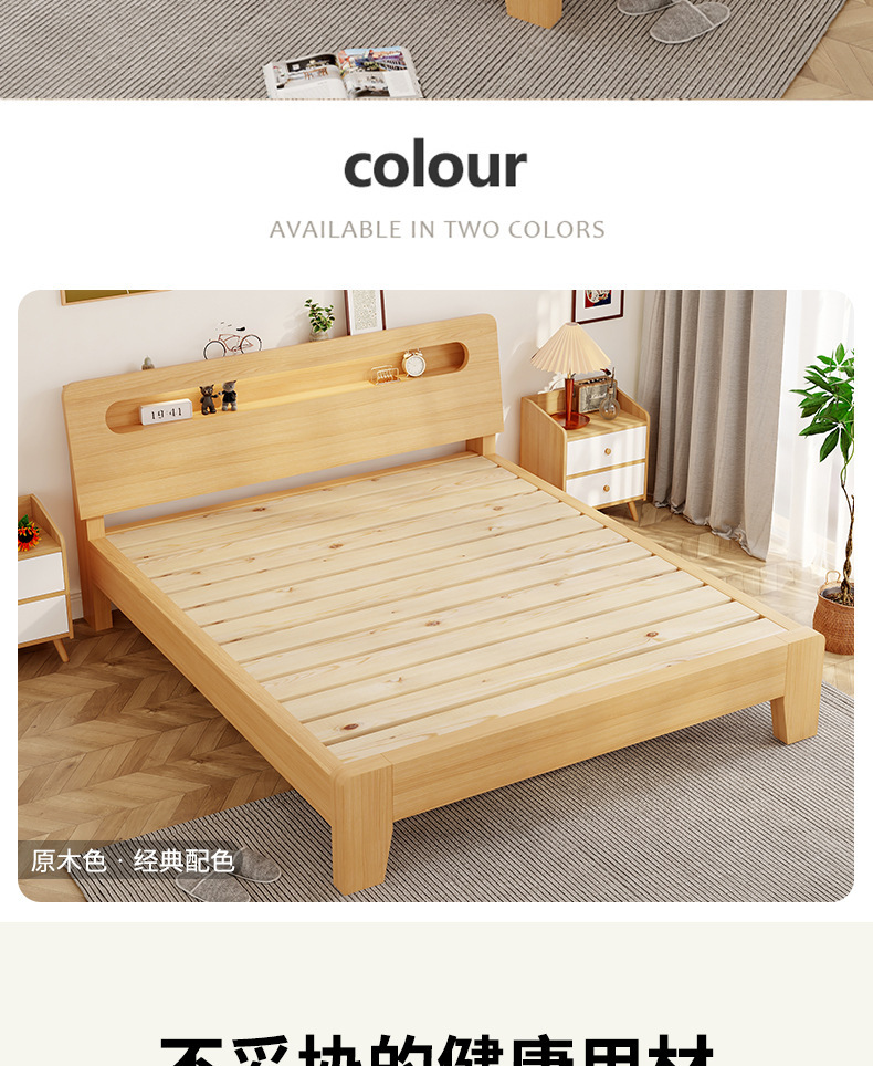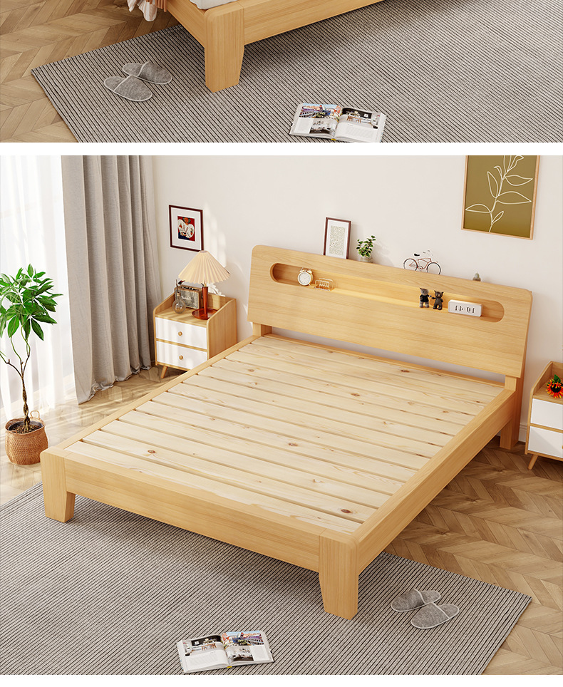 Каркас кровати для домашней спальни 1.2м Из массива дерева Большая Кровать Арендная комната Маленькая квартира Односпальная Кровать Взрослая 1.5м Лог стиль