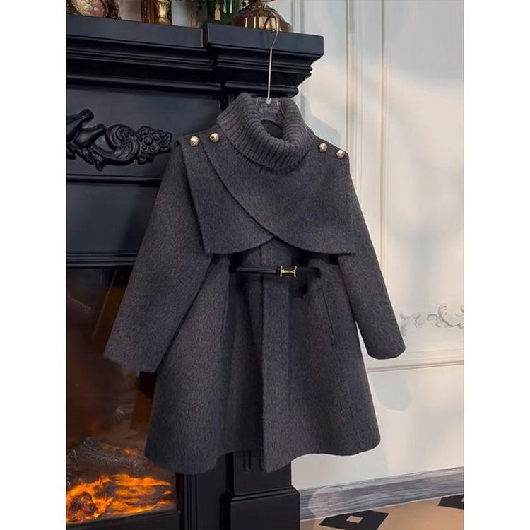 Шершащее пальто для девочек 2025 новый зимний стиль для старших детей модное съемное пальто с капюшоном