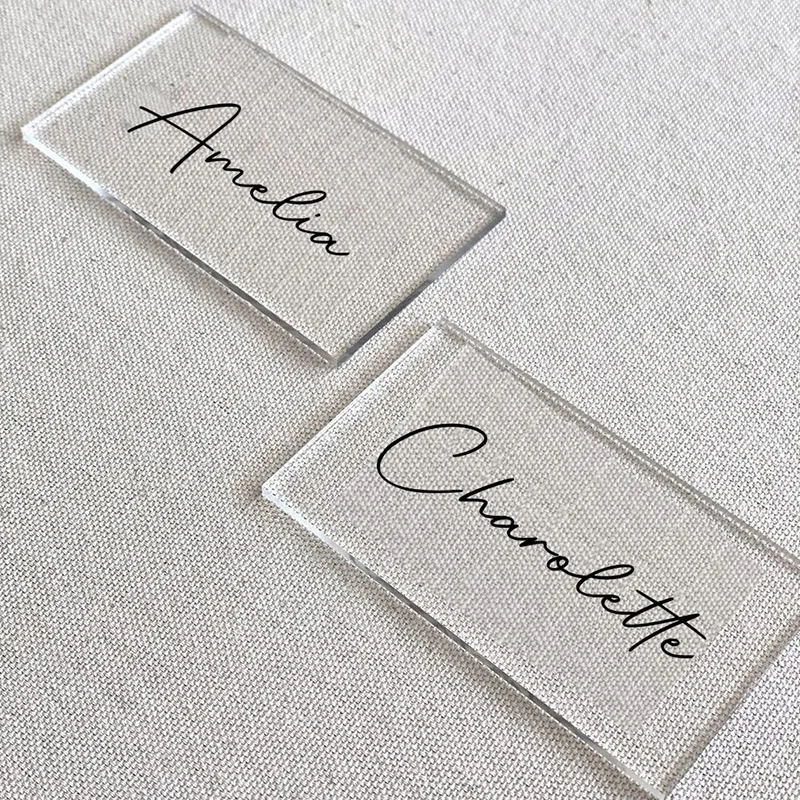丙烯酸卡非常受欢迎,作为姓名标签、护送座位瓷砖、桌子号码和迷你菜单板。它们也通常用作盘子,桌子和宴会艺术聚会和婚礼的装饰食品标志。它可以为您的活动做一个很好的装饰,因为它可以掉到地板上而不会破碎。