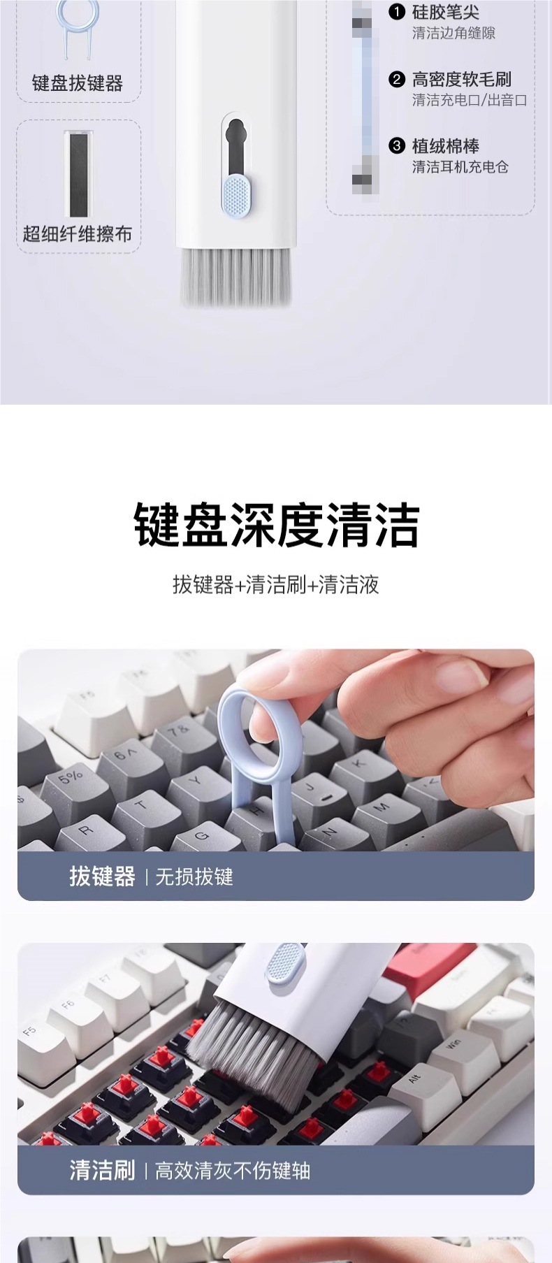 Щетка для чистки клавиатуры, многофункциональный инструмент, набор семь в одном, щетка для удаления пыли с экрана компьютера и мобильного телефона