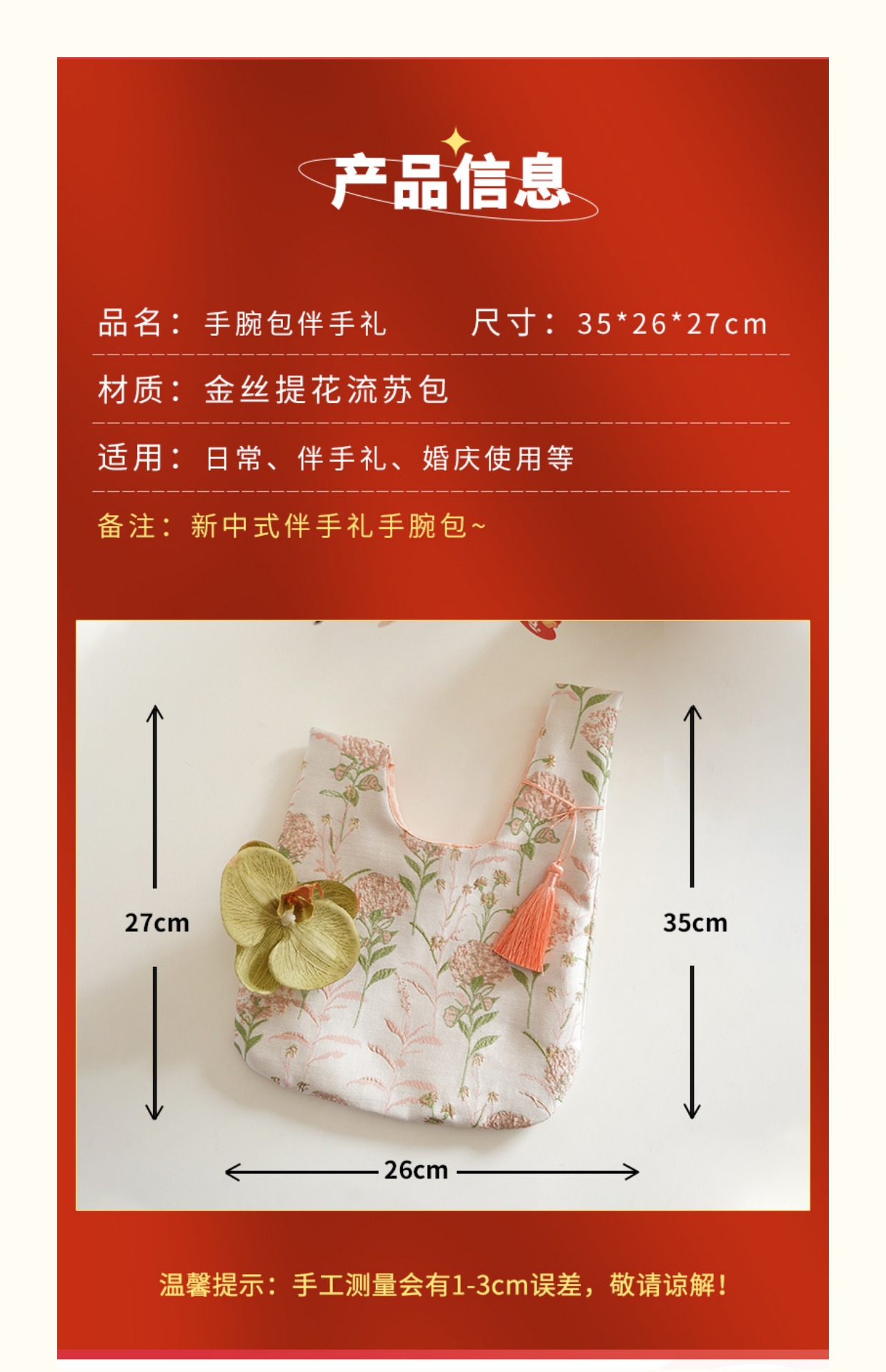 ![]() | Red wrist bag + flower tassel | ¥7.8 / ≈ 94 ₽ | 4802 | 6088059302068 | |