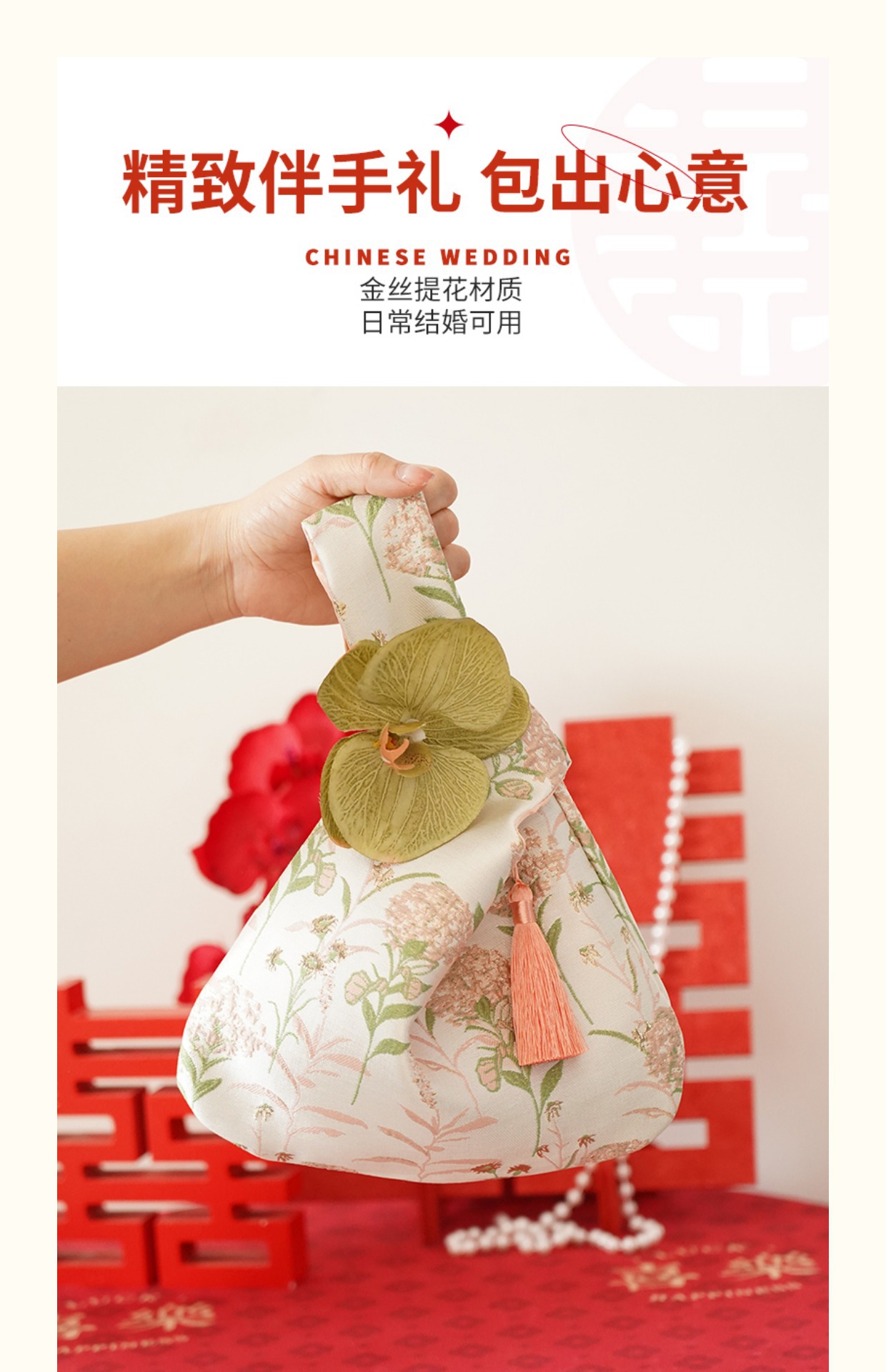 Сувенирная Женская Сумка для Подружки Невесты Подарок на Свадьбу Сумочка для Праздника Золотая Шелковая Жаккардовая Сумка