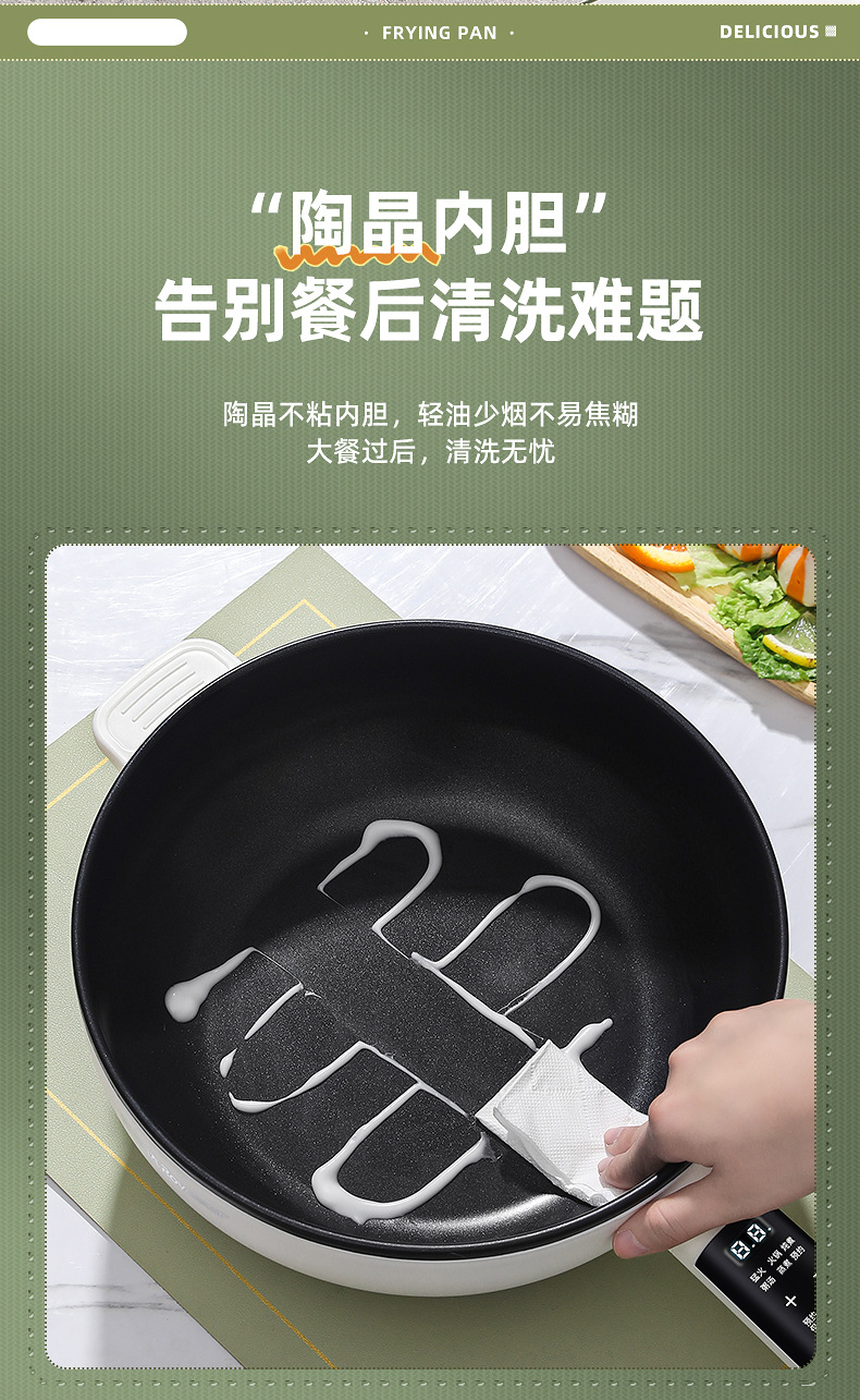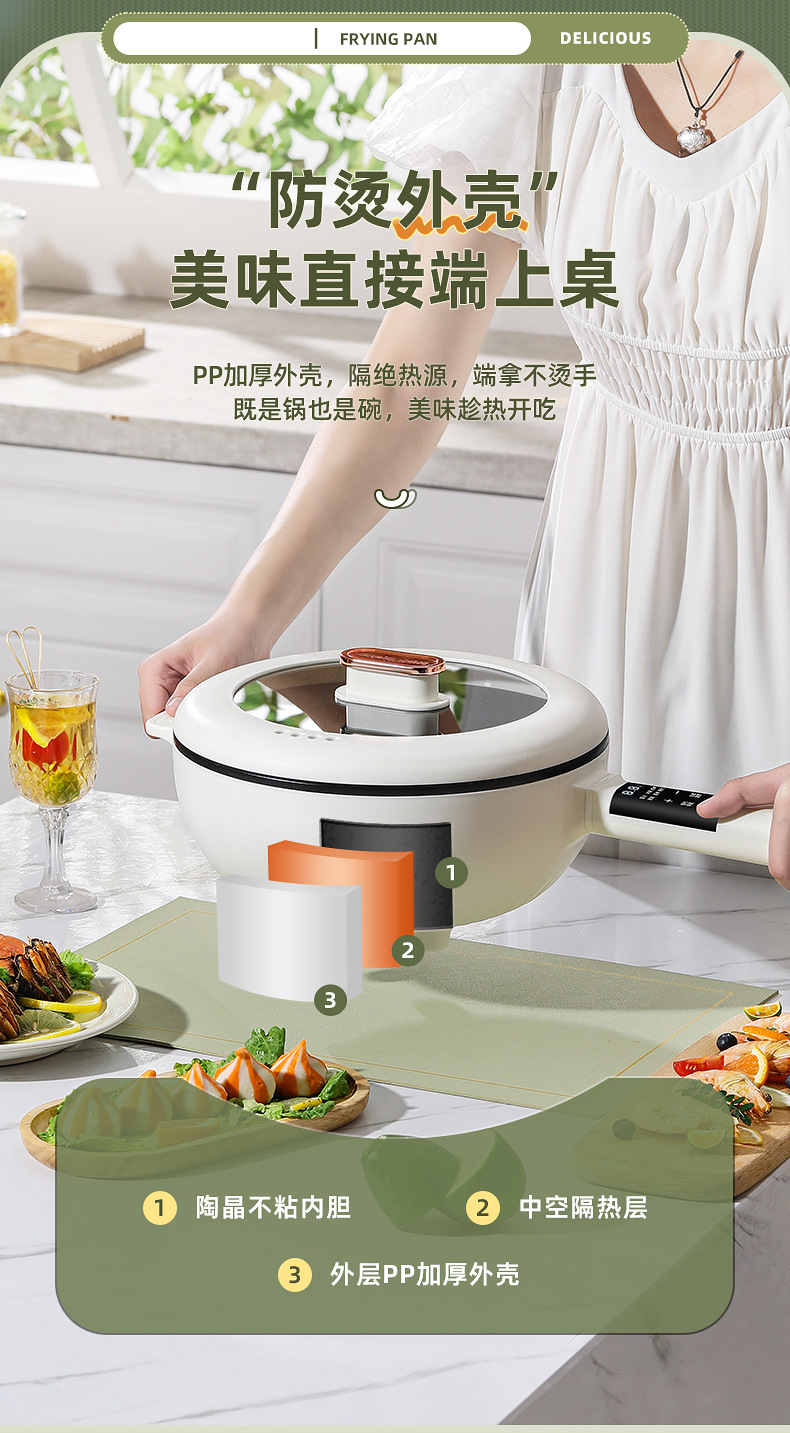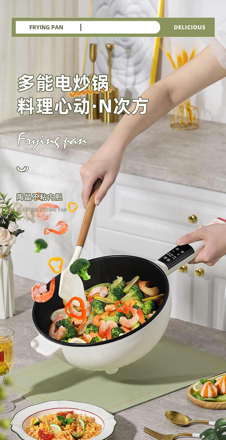 Электрическая сковорода для жарки и варки все-в-одном многофункциональная антипригарная кастрюля для дома с функцией пара и жарки