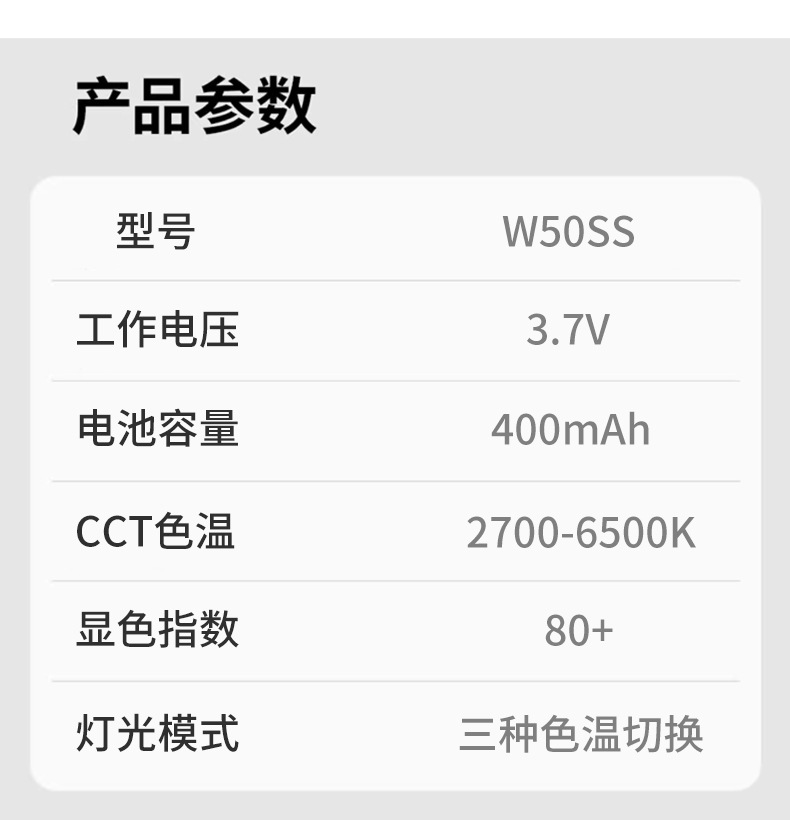 ![]() | W50 magnetic fill light white | ¥20.8 / ≈ 251 ₽ | 2856 | 5920553112294 | |