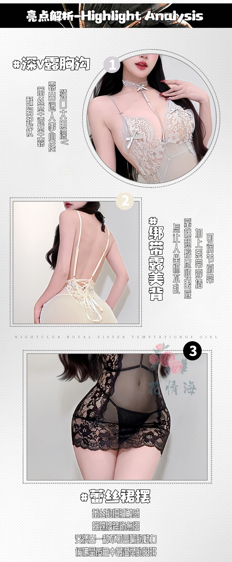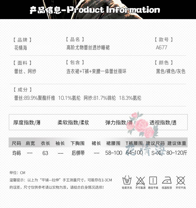 Ночная сорочка Floral Passion Lingerie сексуальный стиль открытой груди высококачественное чувственное кружево прозрачное облегающее платье A677