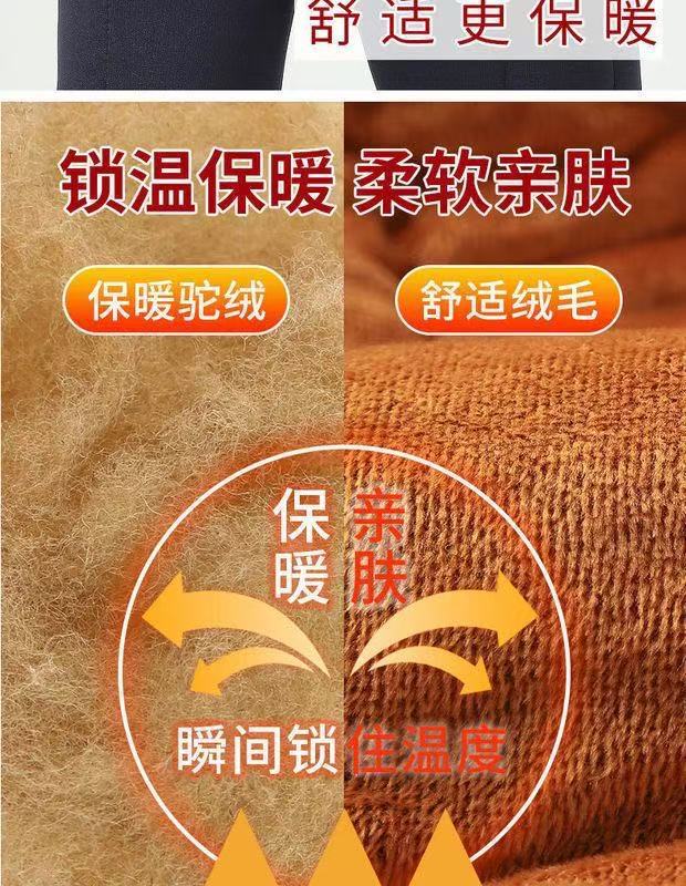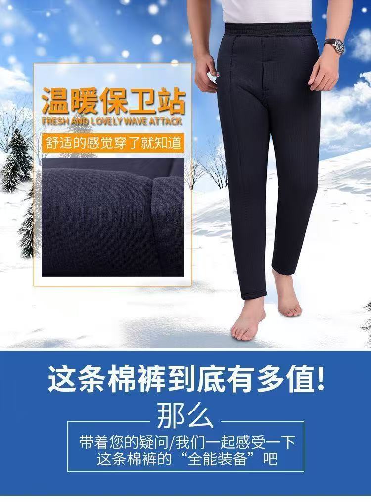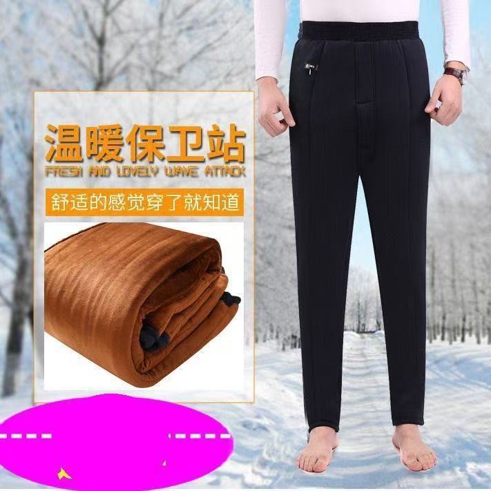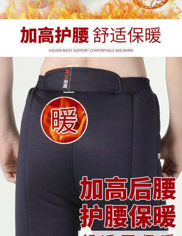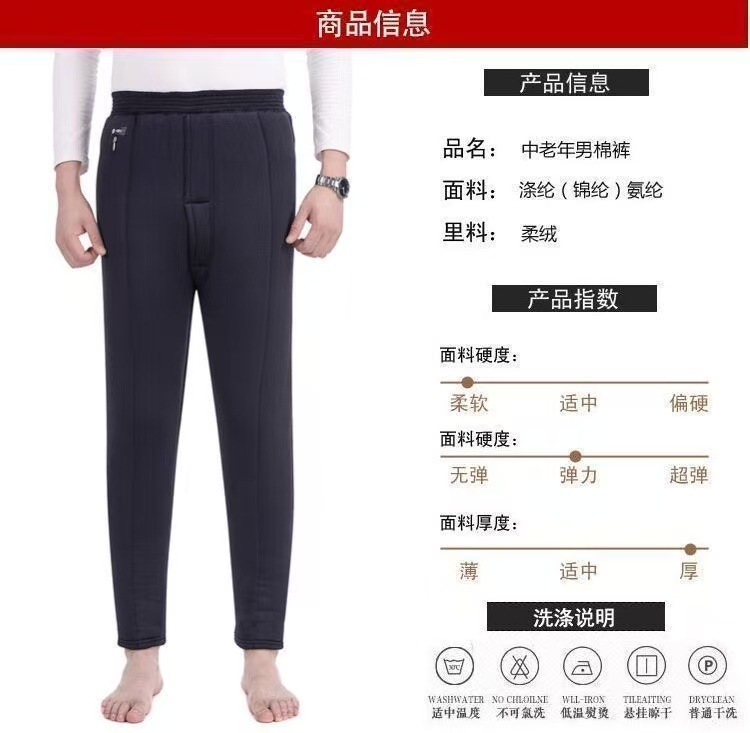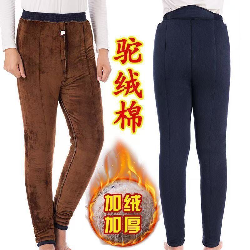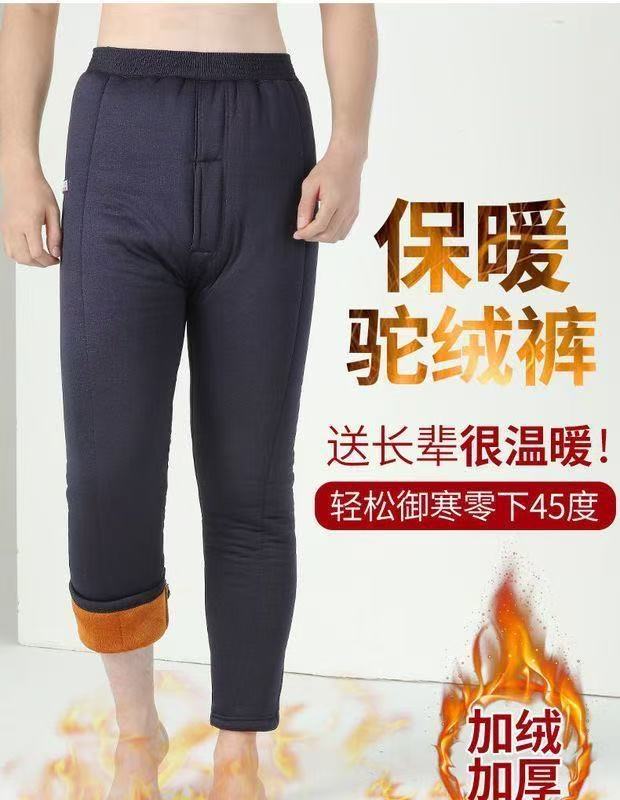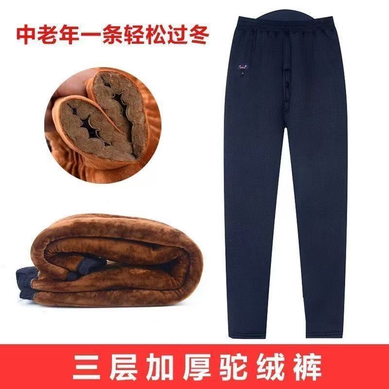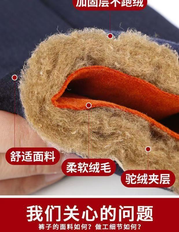 Зимние толстые хлопковые брюки для мужчин среднего возраста, эластичные брюки с высокой талией и глубоким шагом из верблюжьей шерсти для пожилых мужчин, зимние утолщенные брюки с флисовой подкладкой