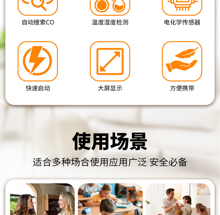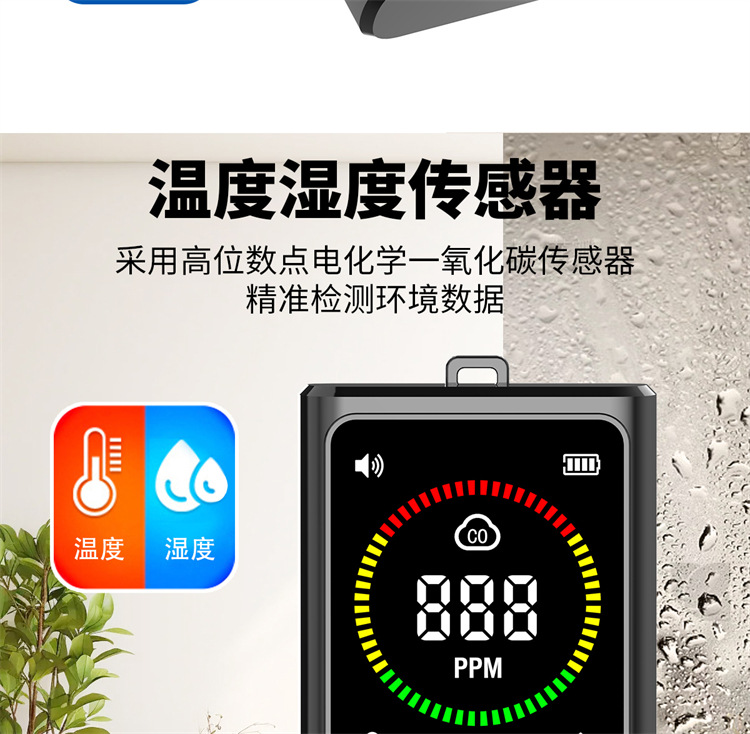 跨境迷你一氧化碳检测仪空气温度湿度CO浓度监测三合一便携式家用