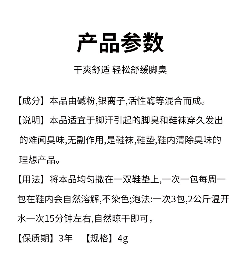 ![]() | Foot odor powder 4g*30 bags/box | ¥3.0 / ≈ 36 ₽ | 49705 | 6171343783599 |
