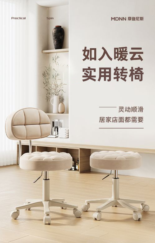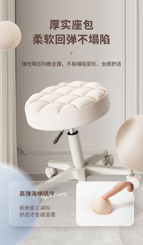Большой рабочий стул на колесах, вращающийся и регулируемый по высоте, круглый барный стул, стул для макияжа, туалетный стул, парикмахерский, маникюрный и барберский стул