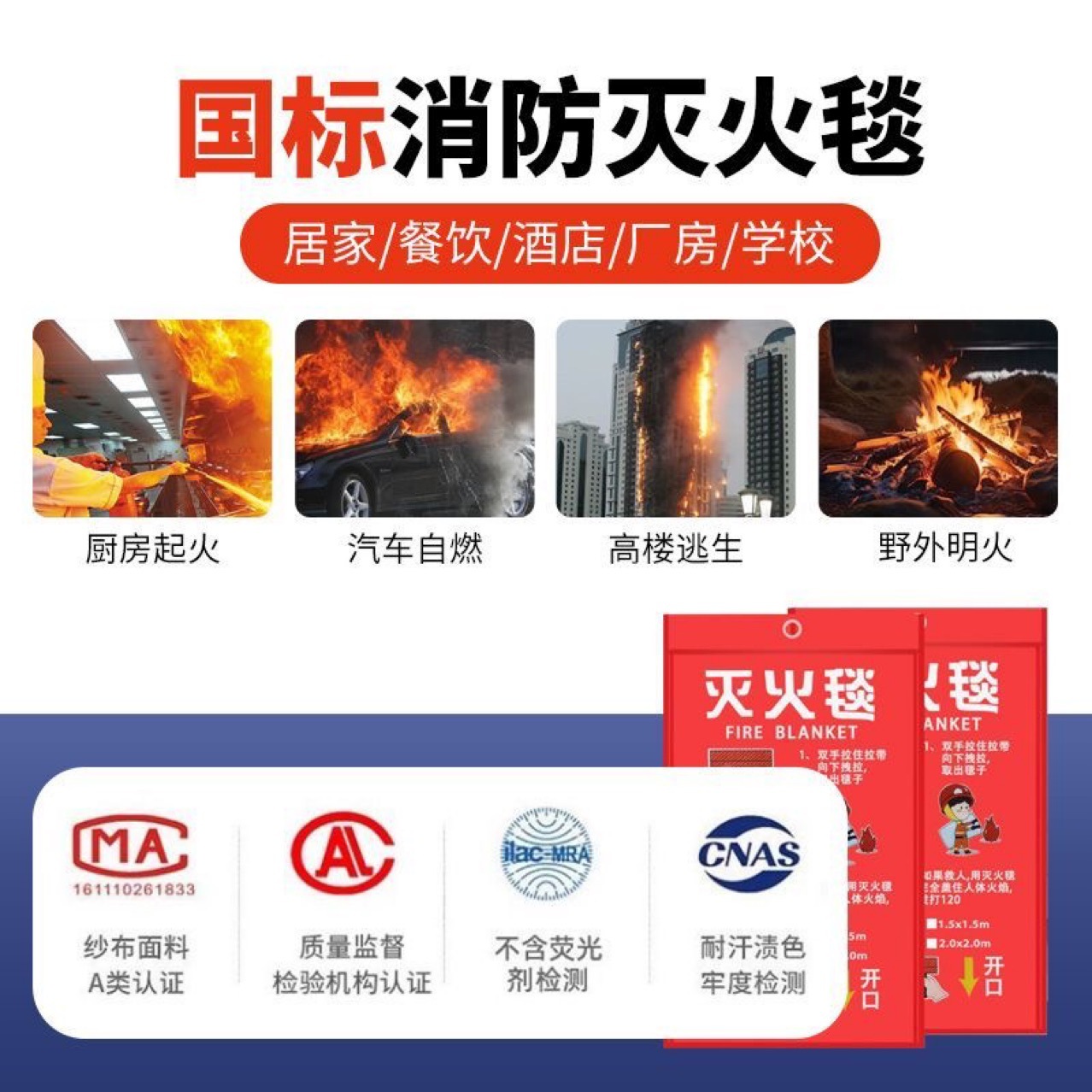 Огнеупорное одеяло в соответствии с национальным стандартом, сертифицированное, утолщенное стекловолокно для кухни и отелей