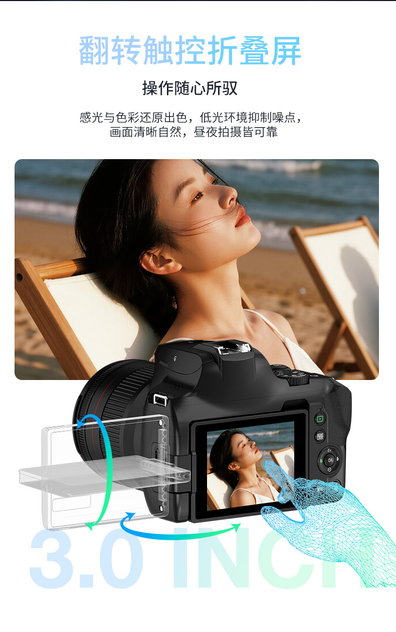 Фотография и Путешествия 7200W Пикселей Может Захватить Луну 4K Беззеркальная Складная Экранная Сенсорная Камера и Рекордер Все В Одном Начального Уровня SLR