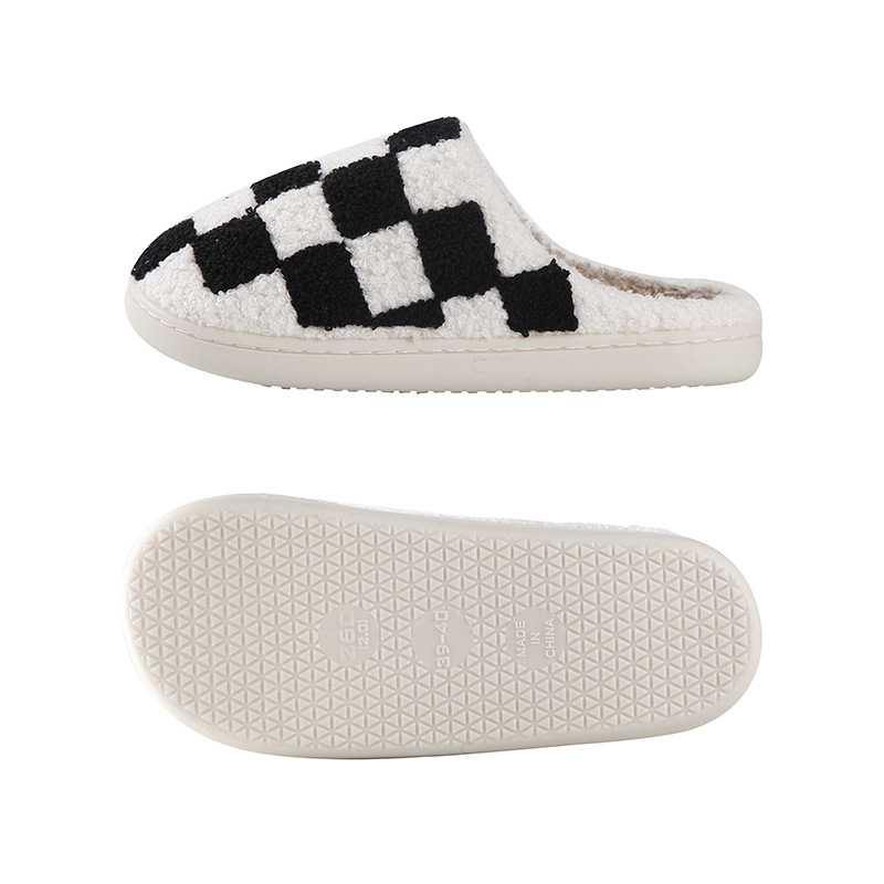 Новые удобные домашние шахматные теплые зимние хлопковые тапочки для пар, мужчин и женщин, с толстой подошвой, мягкие, утолщенные и нескользящие