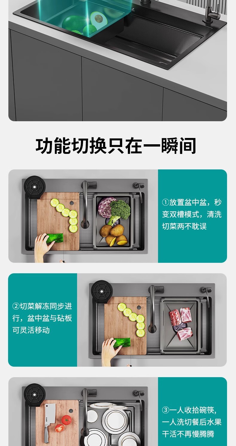 ![]() | Gun black-c package-three-stop pull-out faucet + soap dispenser | 【60x45cm】thickened 5mm | ¥428.0 / ≈ 5 156 ₽ | 3448 | 6088290255731 | |