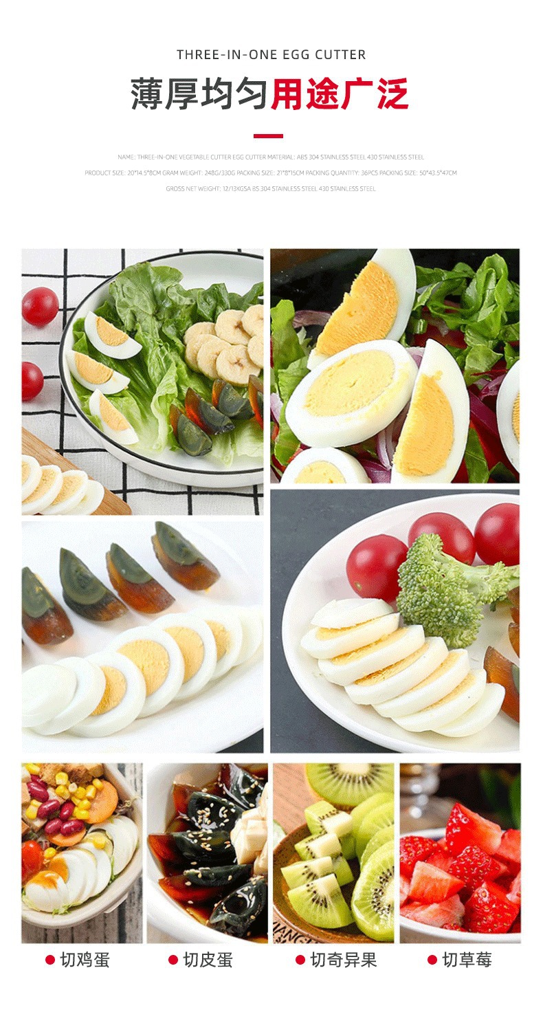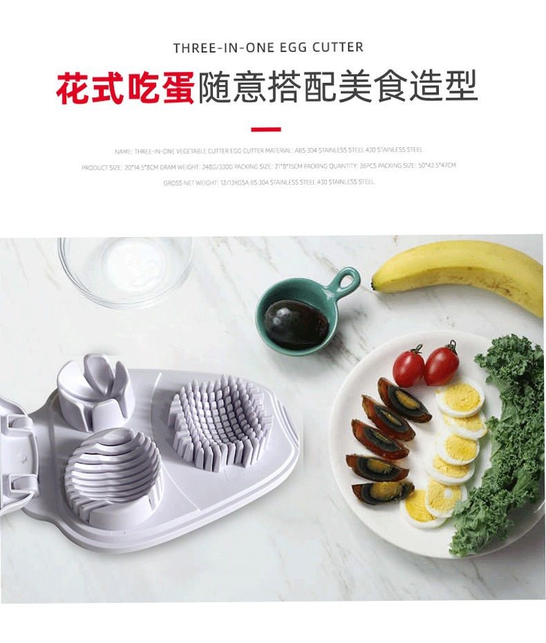 Кросс-бордерный популярный многофункциональный трехв одном нарезчик яиц домашний инструмент для нарезки яиц оригинальный нарезчик яиц
