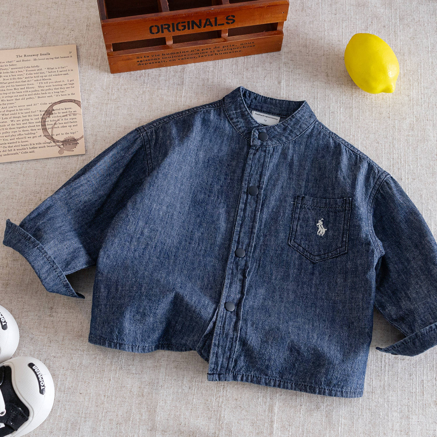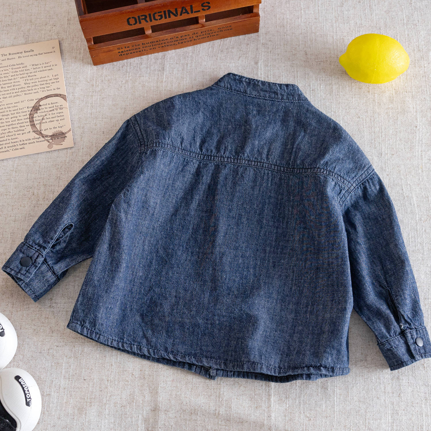 Джинсовая рубашка для детей 2025 осень, японский стиль для мальчиков, рубашка с отложным воротником, простая однотонная куртка для малышей