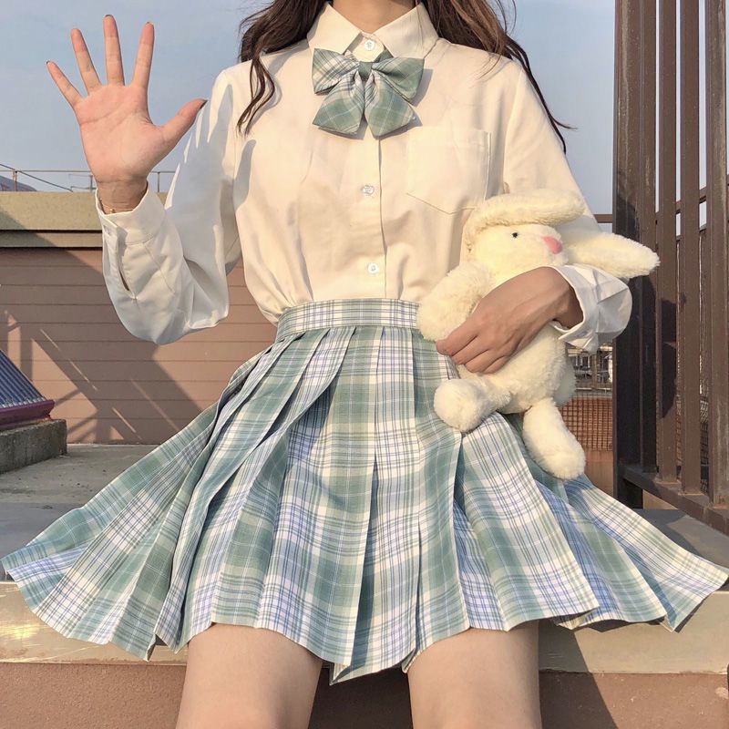 2024 Новая японская юбка в стиле JK в клетку комплект с коротким рукавом юбка-плиссе униформа для студентов оптом