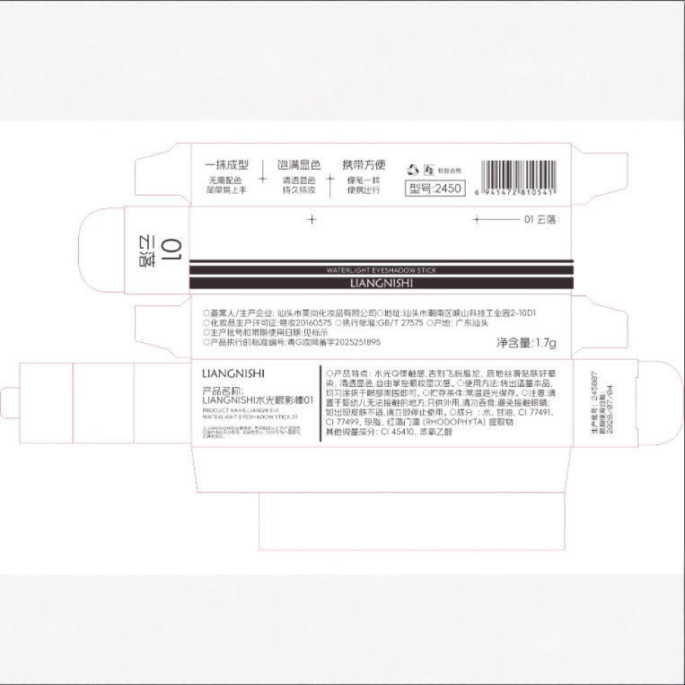 Карандаш для теней Liangnisi One-Touch Water-Gloss Jelly, прозрачный и блестящий, для начинающих, водянистые перламутровые глиттеры, стойкие и водостойкие 2450