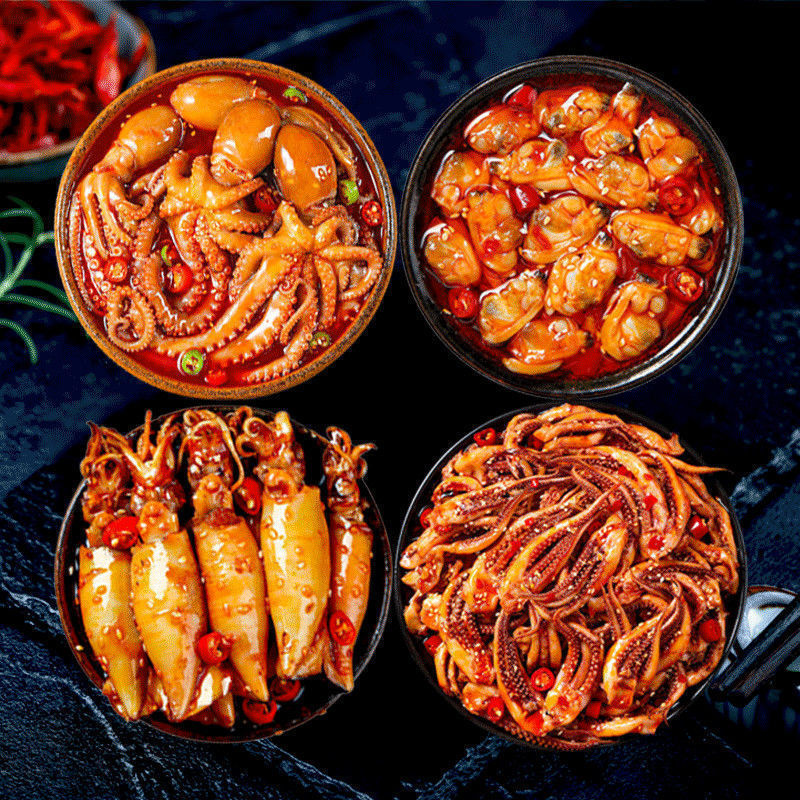 Острые закуски из осьминога морепродукты готовые к употреблению кальмары абалоня гребешки креветочные хвосты консервированные популярный товар