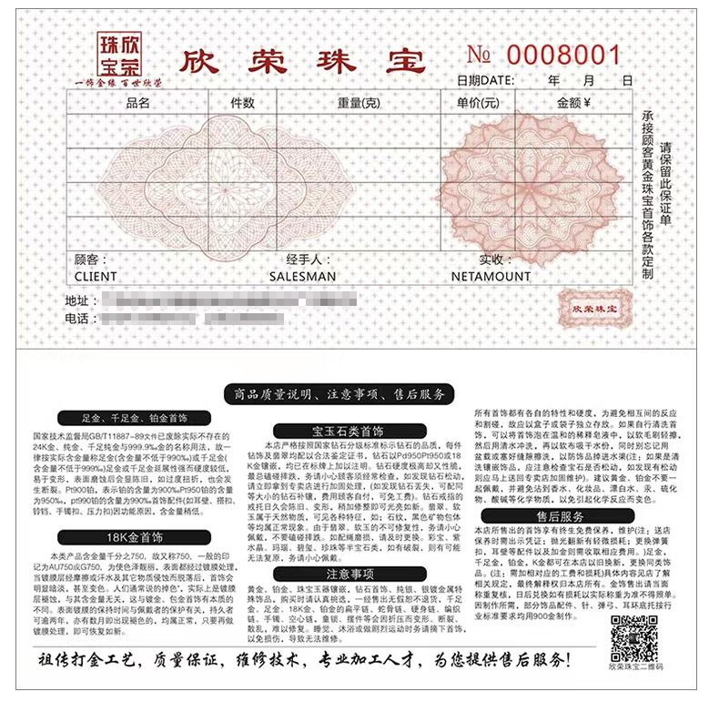 Индивидуальный китайский золотой гарантийный талон, Чао Тай Фук, золотой, Чао Тай Фук, Лао Фэнсян, Чао Тай Фук, ювелирный гарантийный талон