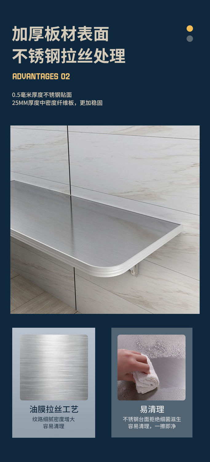 Складной стол из нержавеющей стали 304, настенный кухонный складной обеденный стол, невидимый рабочий стол, настенный стол без сверления