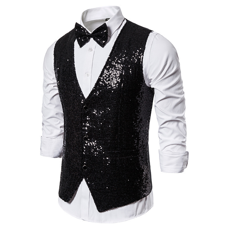 Мужская сценическая одежда Amazon, жилет с пайетками без галстука для студийной фотографии, ведущий, певец