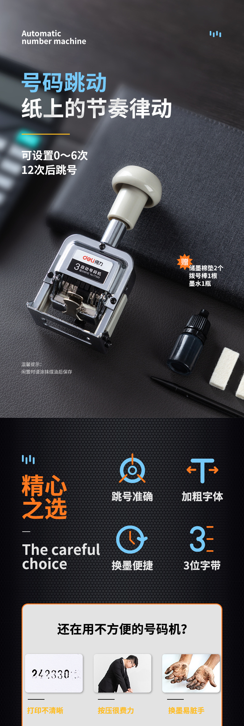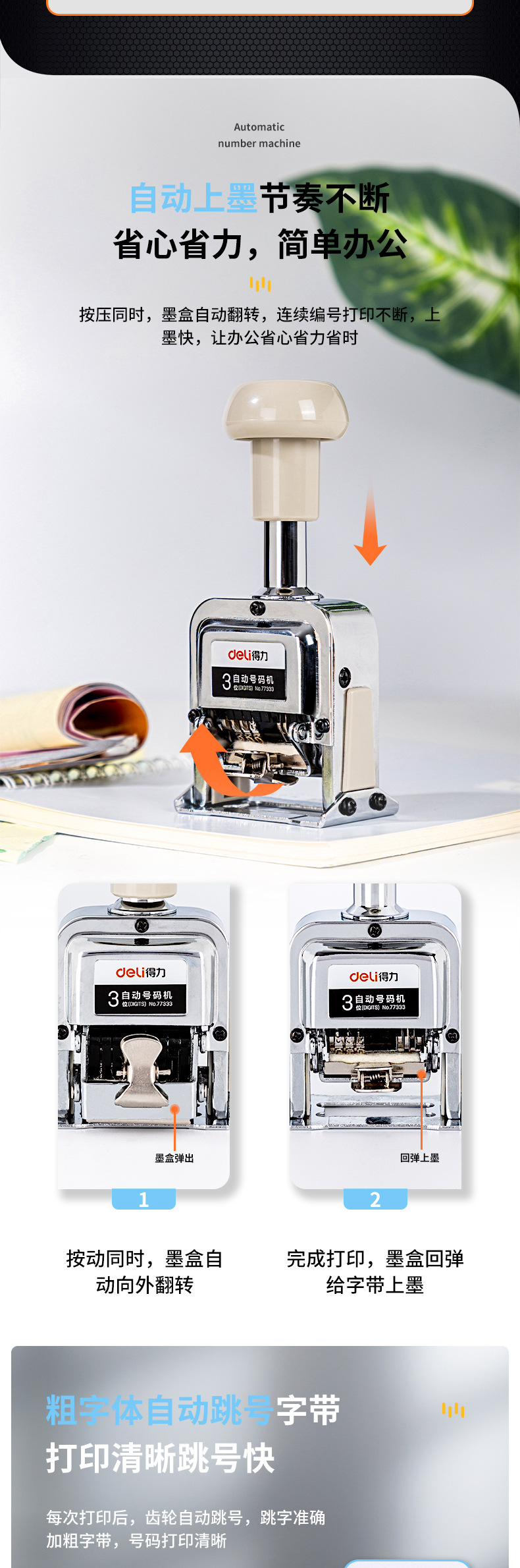 Автоматическая нумерационная машина Deli 77333, 3-значный финансовый банк, цифровой штамп, автоматическая машина для непрерывной нумерации страниц