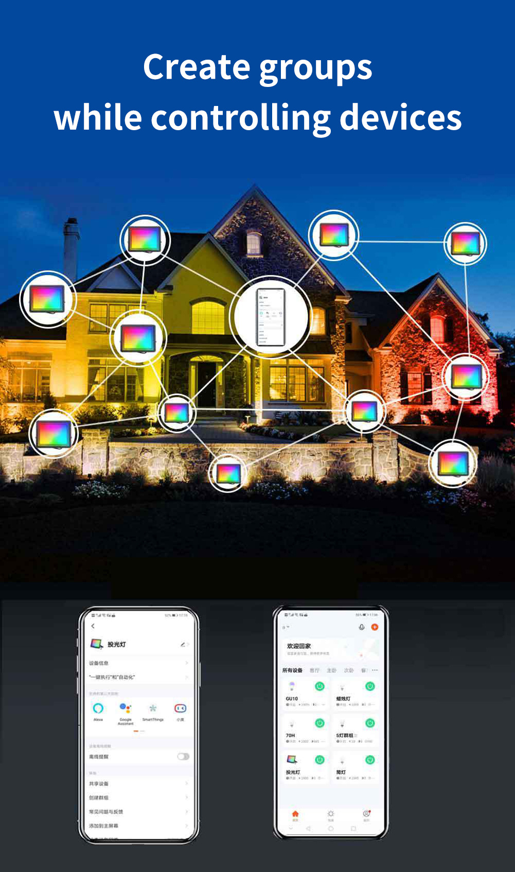 通过语音命令调整开/关、亮度和更改灯光颜色。 (需搭配智能音箱)