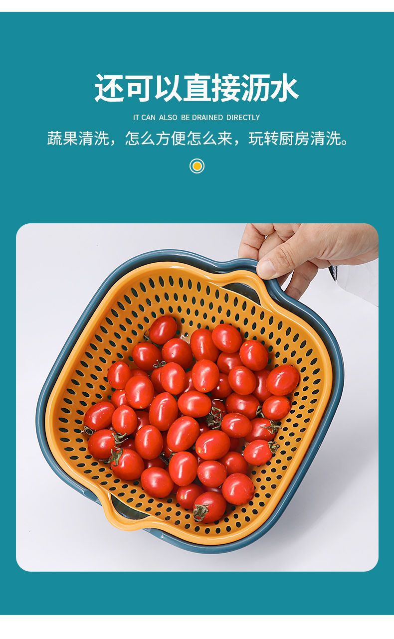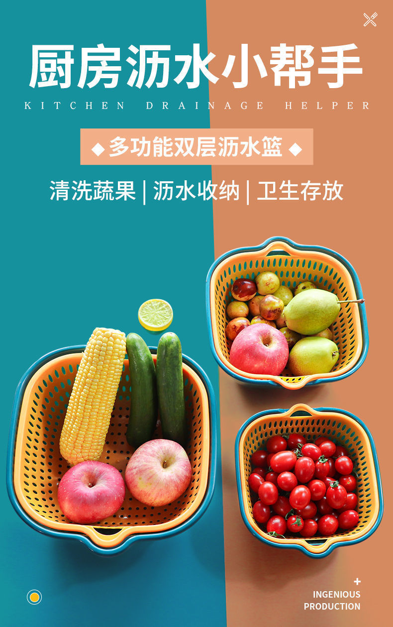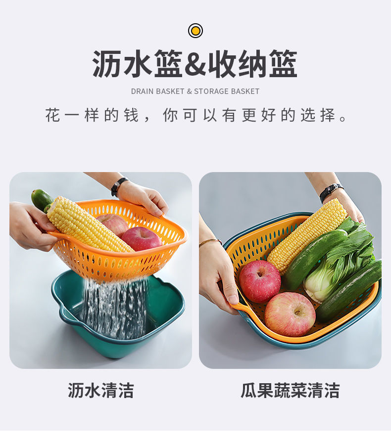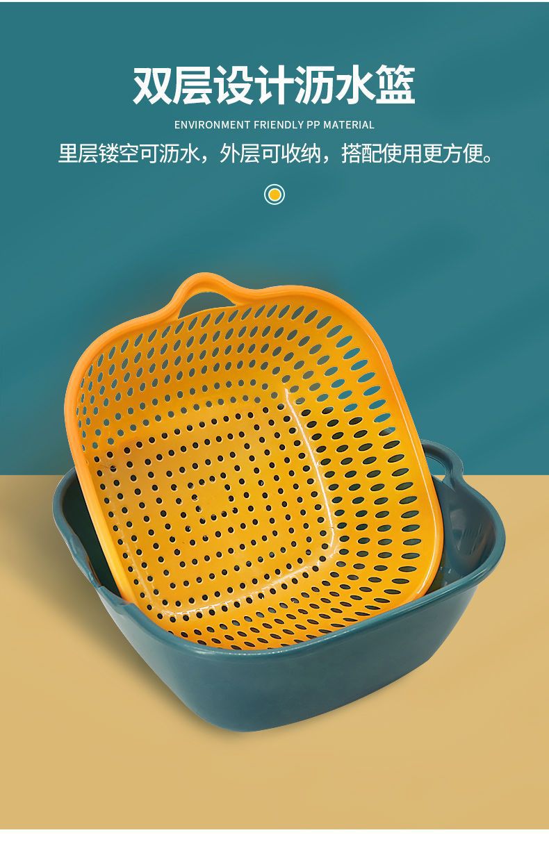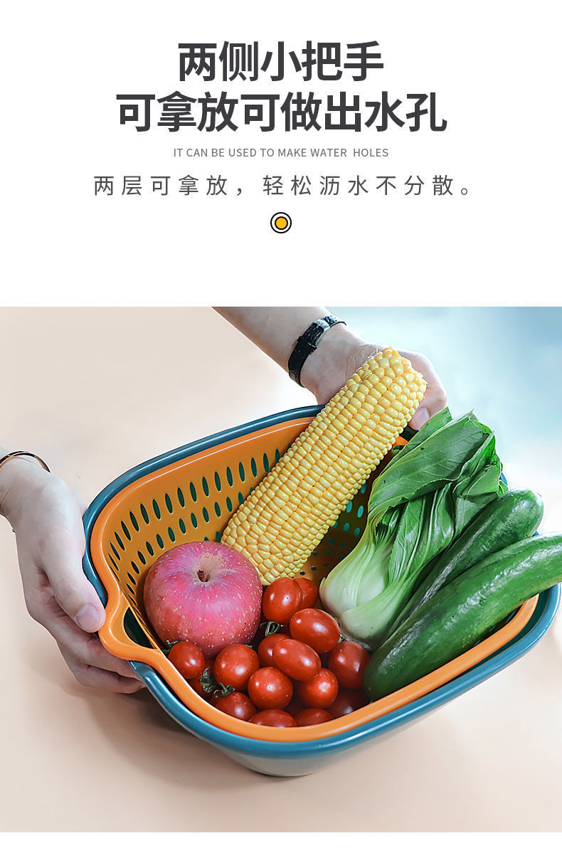 Новая утолщенная двухслойная раковина для мытья овощей с дренажной корзиной, поднос для фруктов для гостиной, корзина для мытья фруктов на кухне, корзина для овощей
