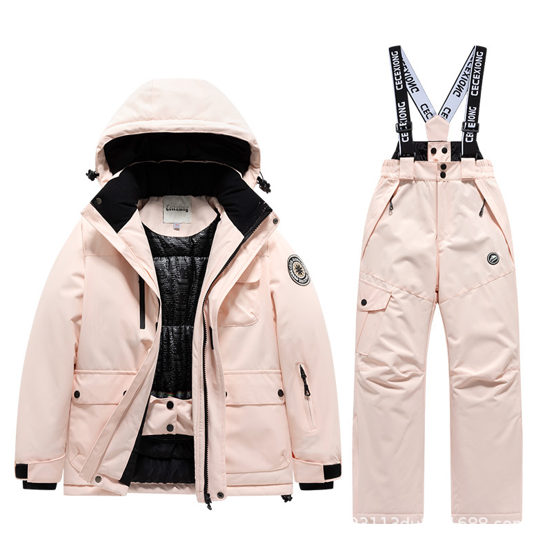 Новый комплект лыжной одежды для детей, зимняя водонепроницаемая утолщенная одежда, комбинезон и снежные брюки для мальчиков и девочек, зарубежная торговля