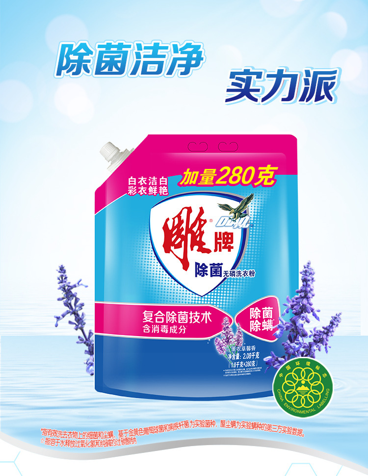 Стиральный порошок без фосфатов Diaopai 2кг, большой пакет, удаление пятен, замачивание, антибактериальный, долговечный аромат, упаковка оптом, оригинальный продукт