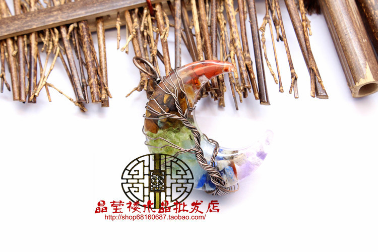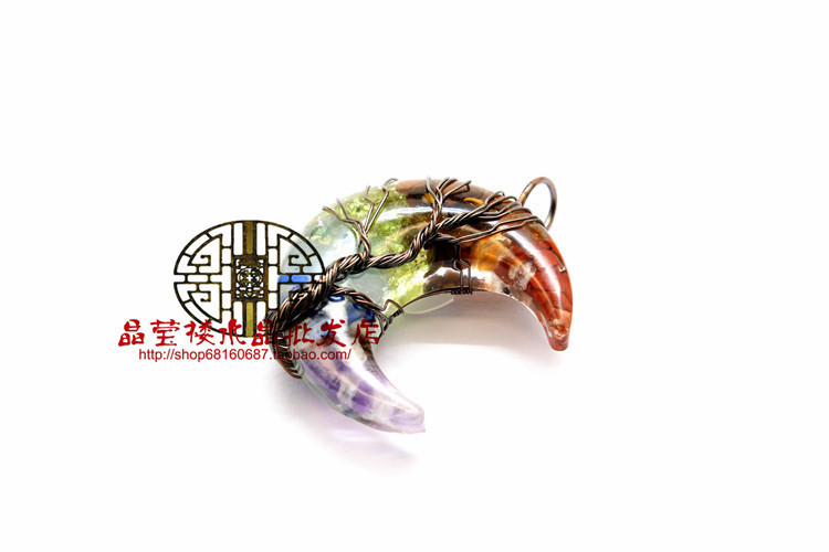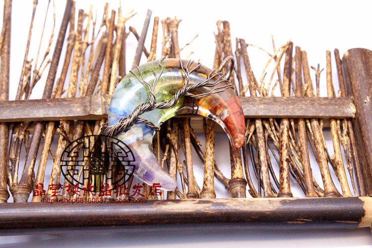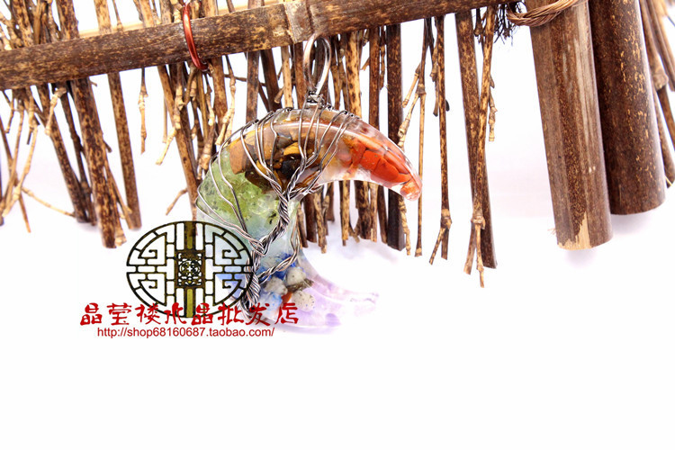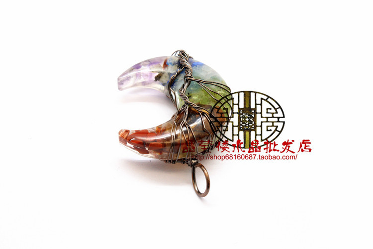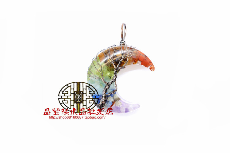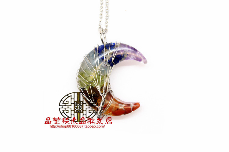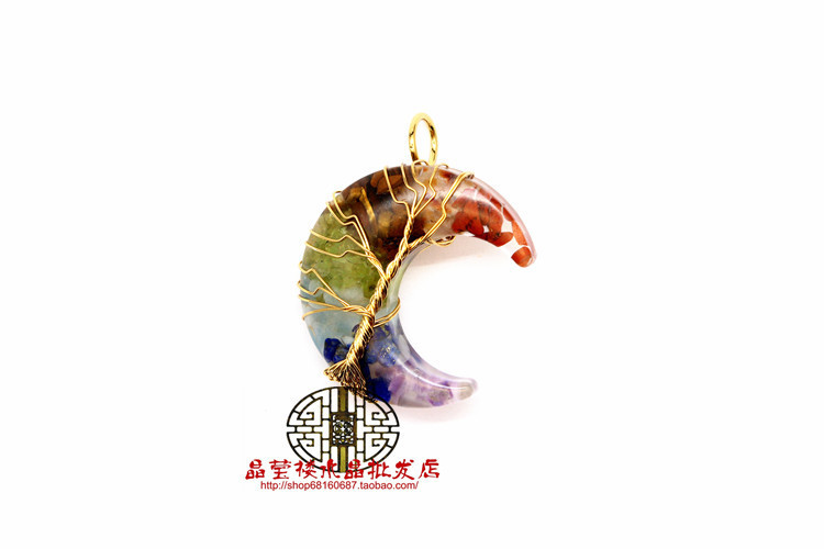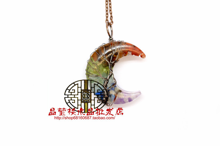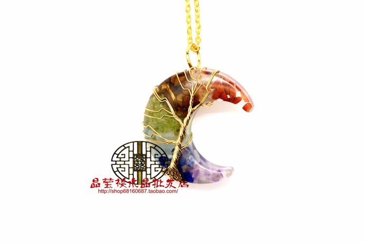 Кросс-бодер экспорт ювелирные изделия обмотка смолы кристаллический гравий лунный кулон ожерелье дерево жизни ювелирные украшения для мужчин и женщин