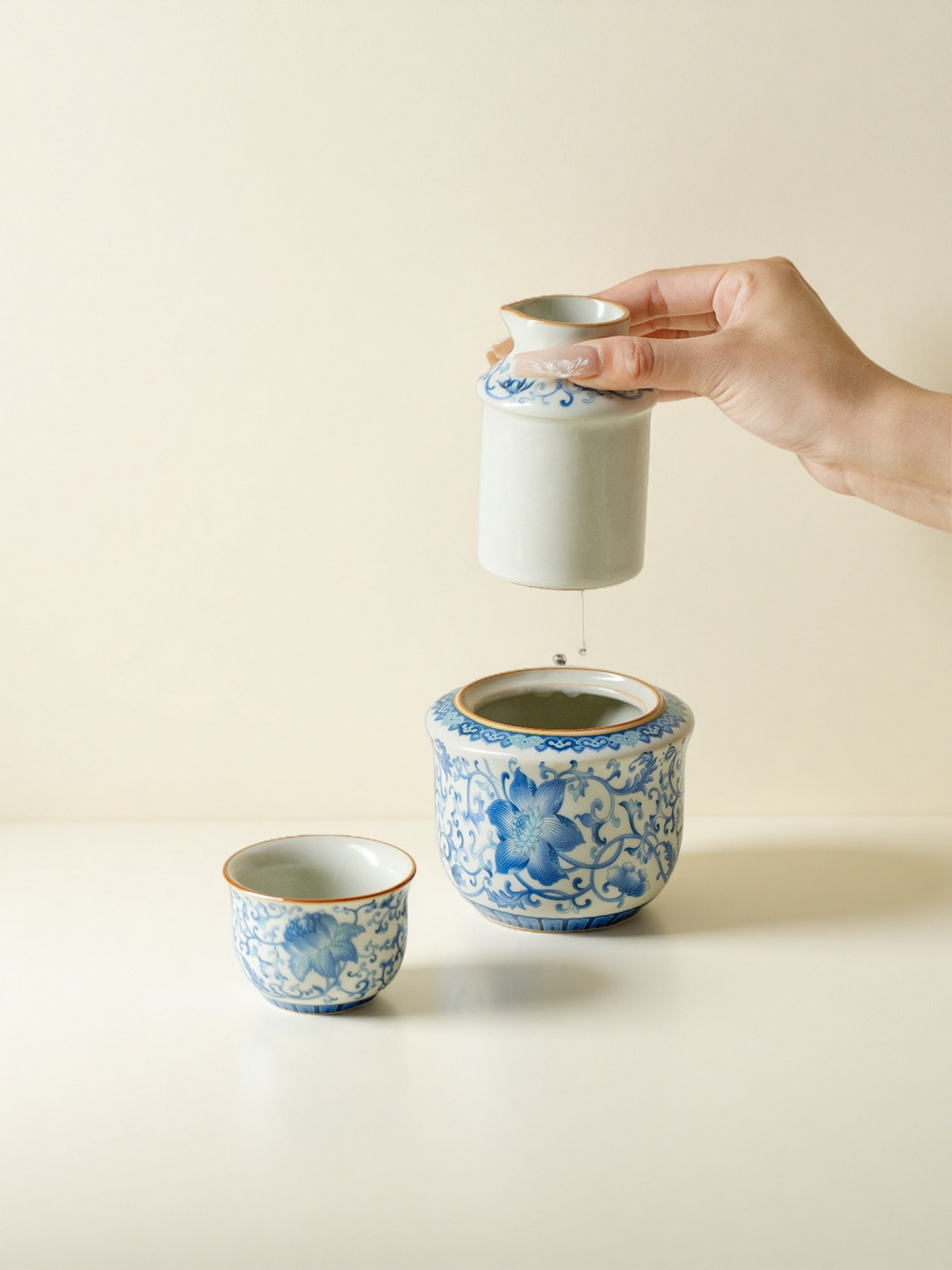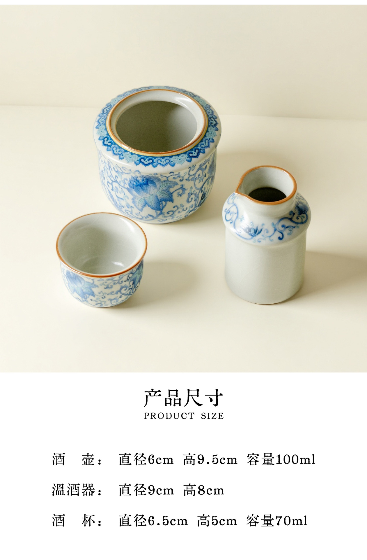Подогреватель вина из голубой и белой керамики с узором лотоса для дома, подходит для подогрева вина и саке