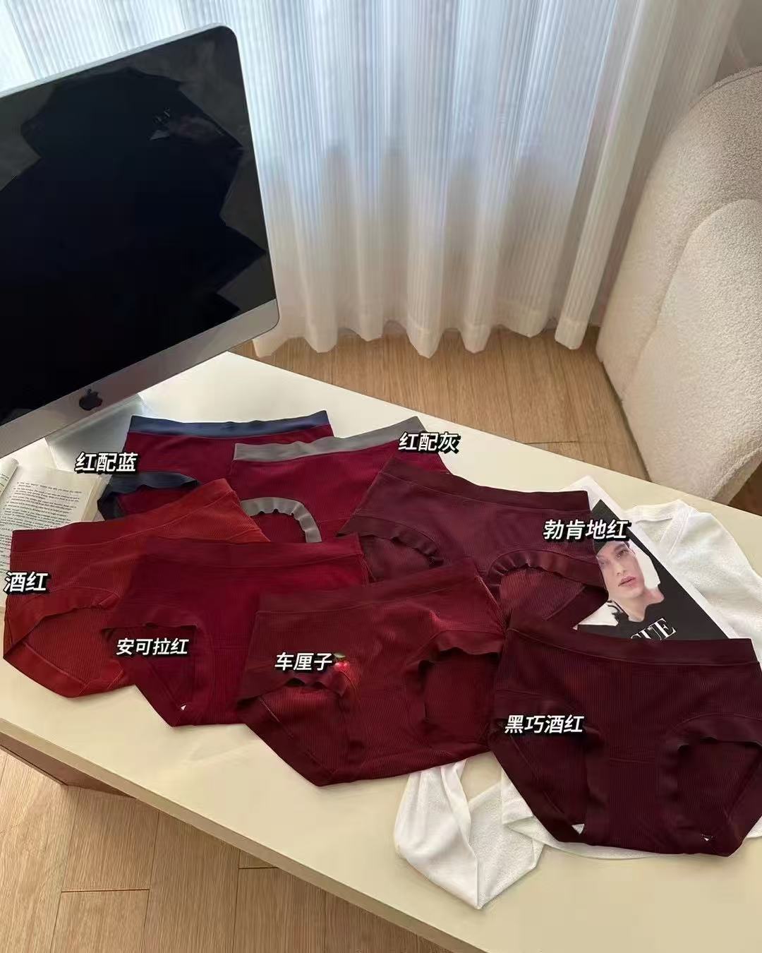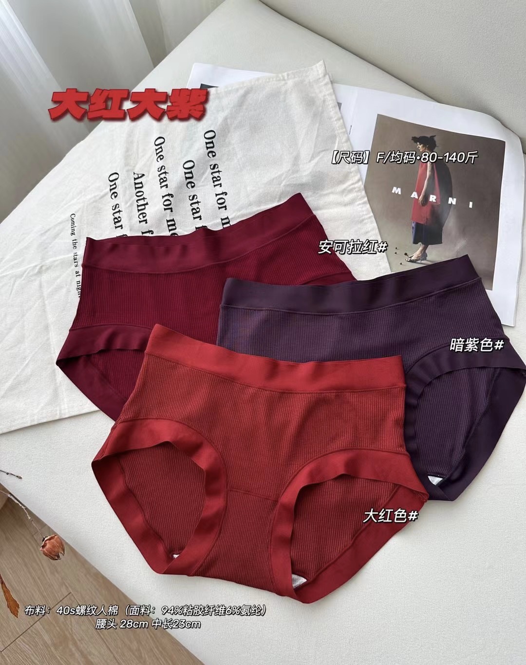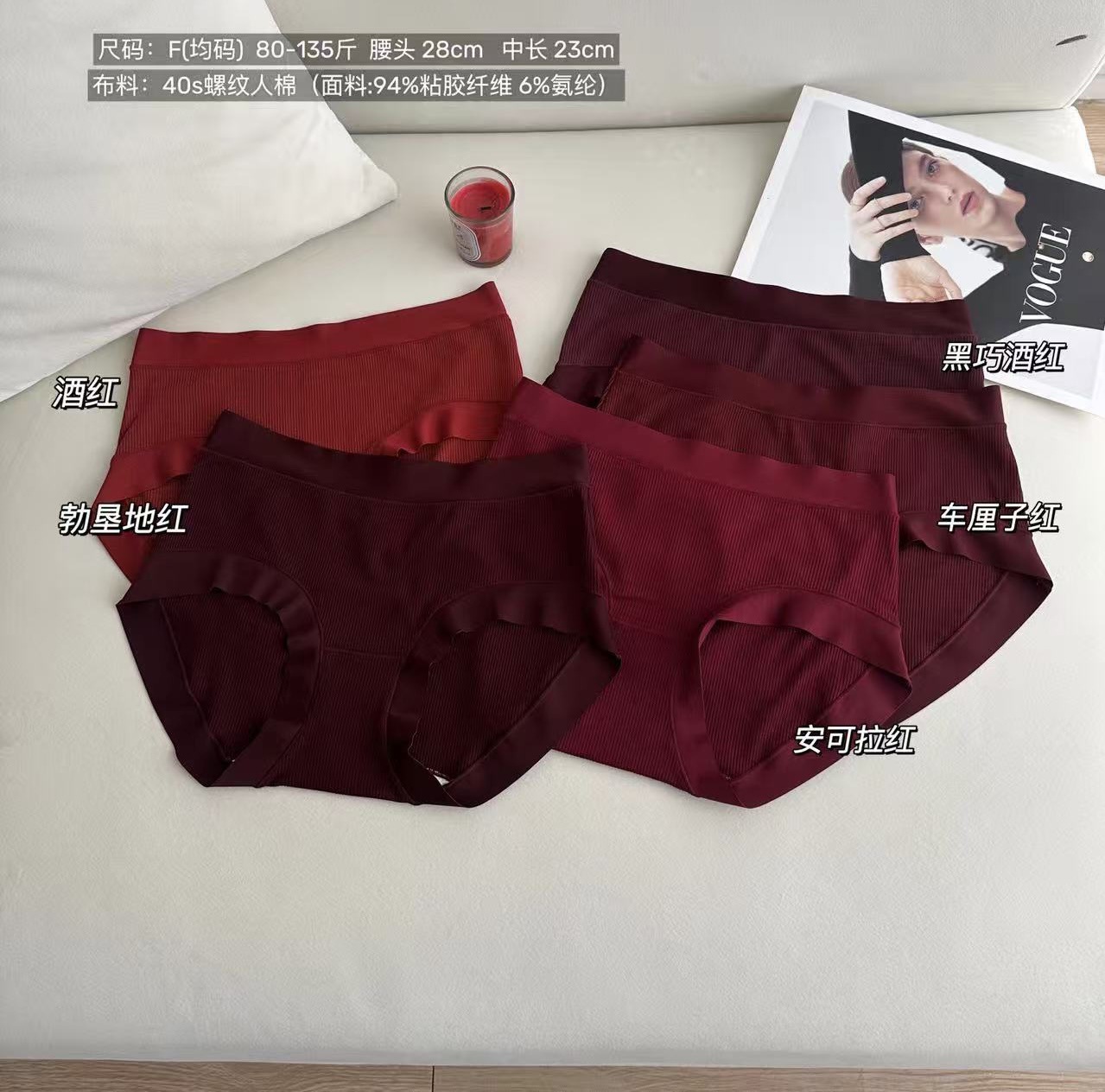 Красные трусики для женщин в их зодиакальный год, рифленый хлопок, шелк тутового дерева 10A, антибактериальный шаг, средней талии, облегающие бедра, анкора красные брифы